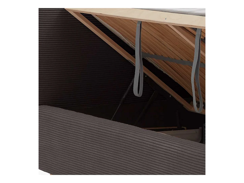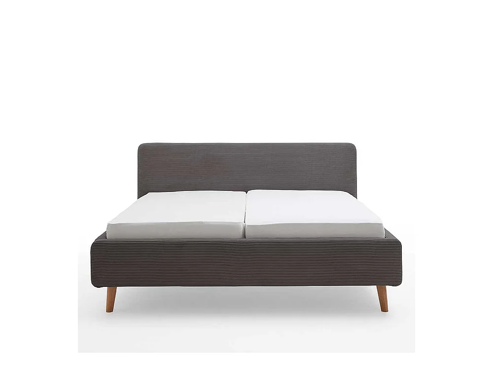 Graues Polsterbett mit Cord Bezug Vierfußgestell aus Holz