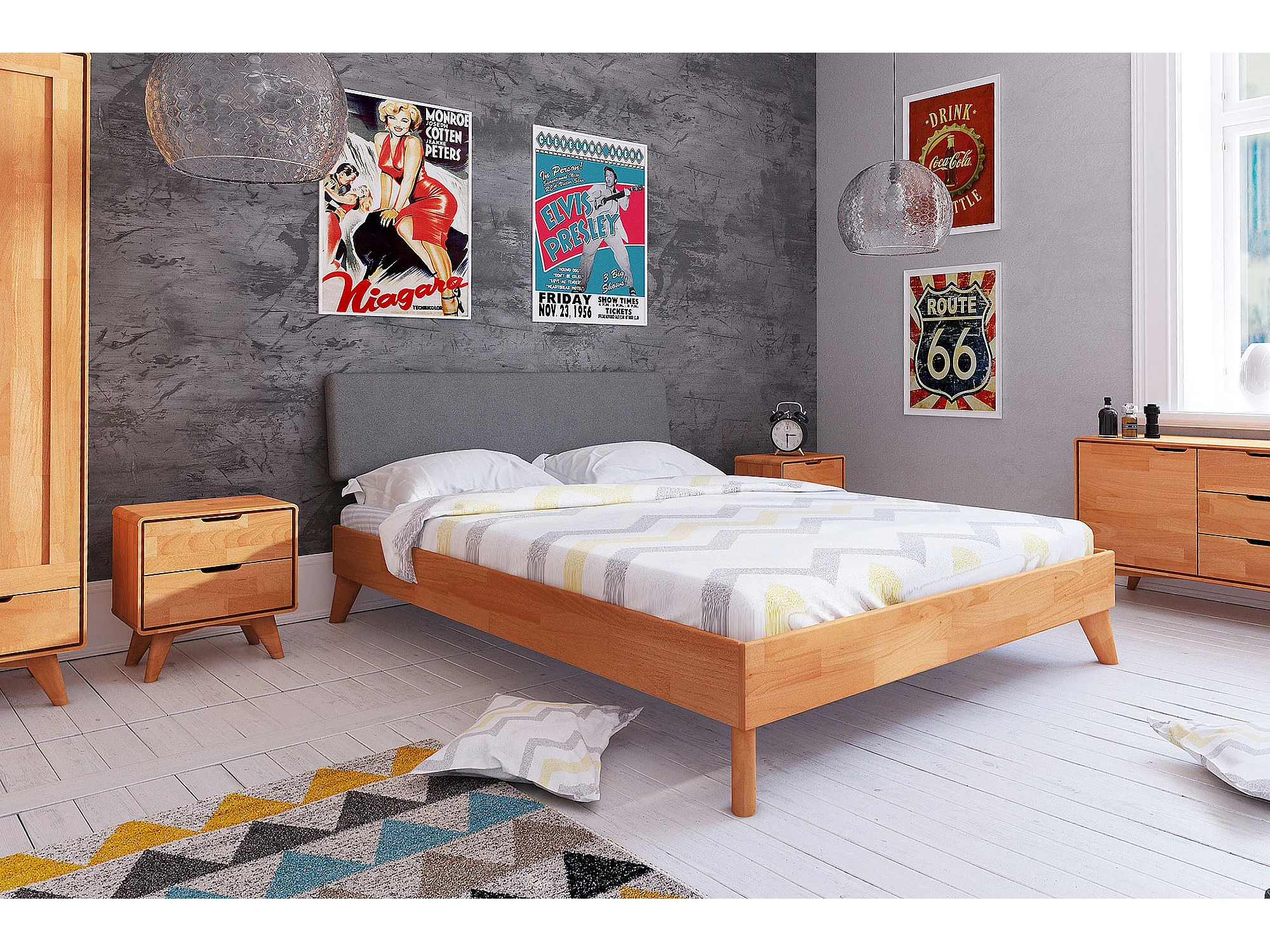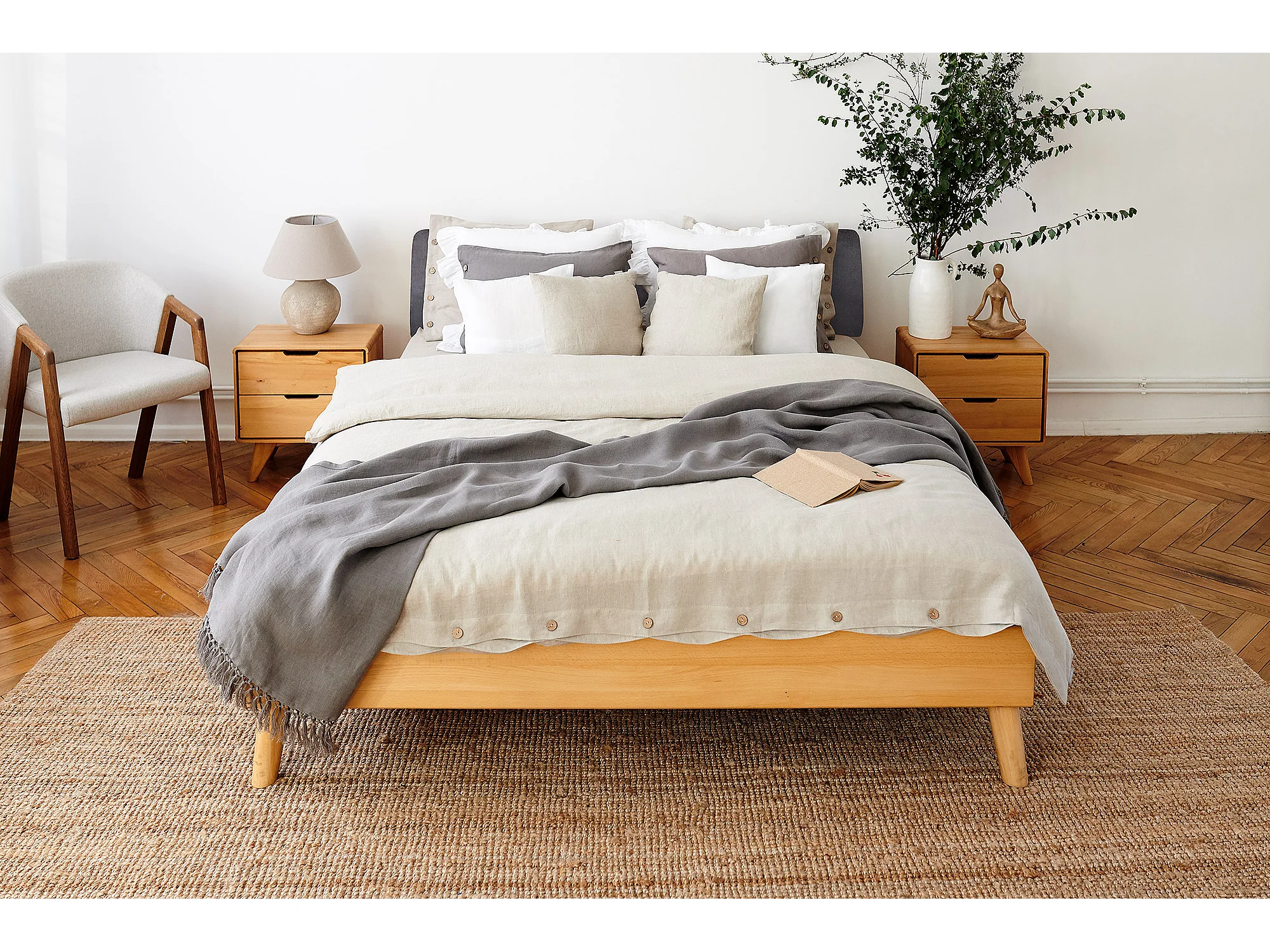 GREG - Bett mit Polsterkopfteil aus Kernbuche, naturgeölt 120x200