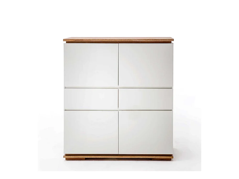 Griffloses Highboard in Weiß Asteiche Massivholz