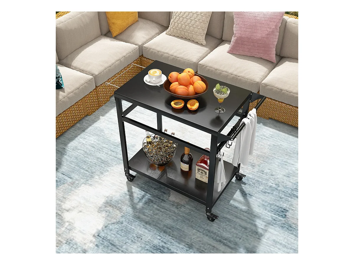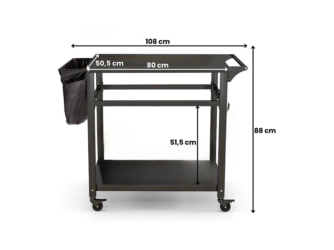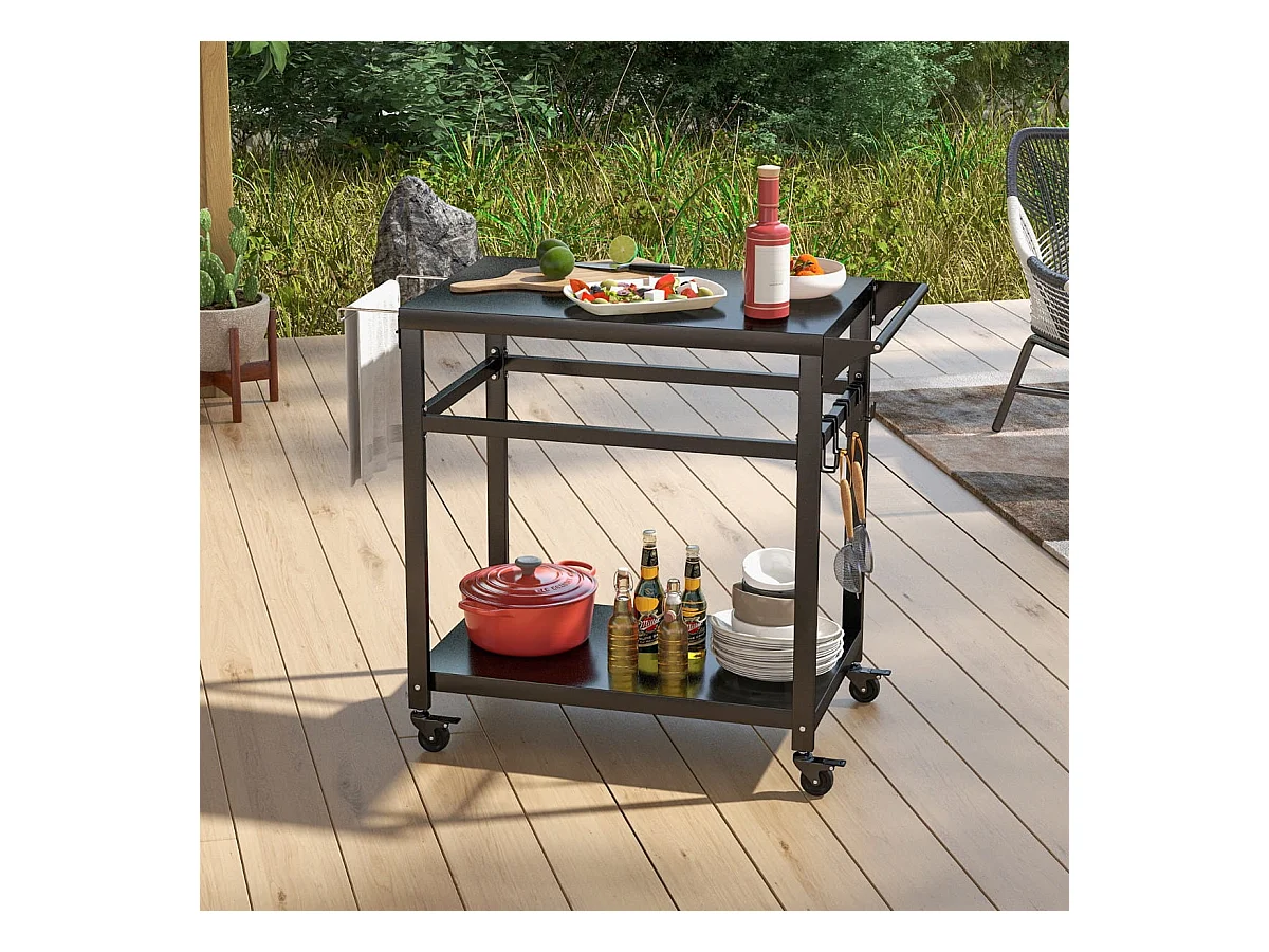 Grillwagen für den Außenbereich mit zwei Regalen 4 feststellbaren Rädern & Seitengriff Schwarz