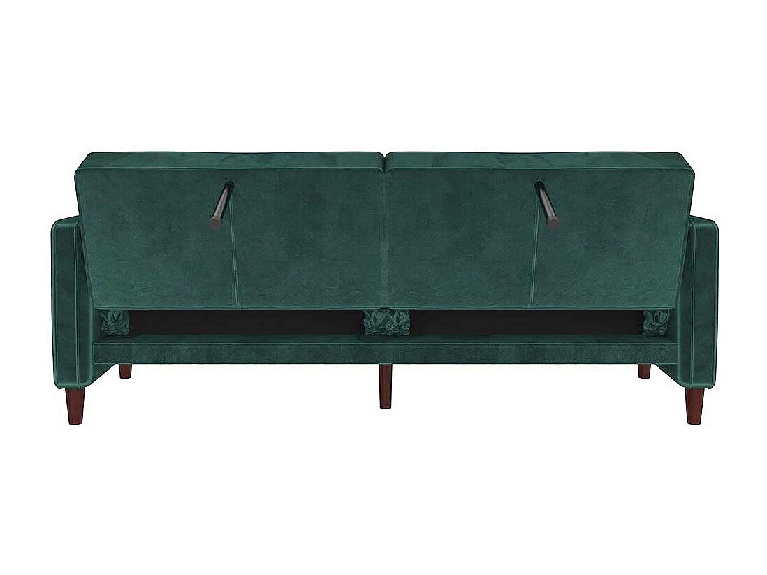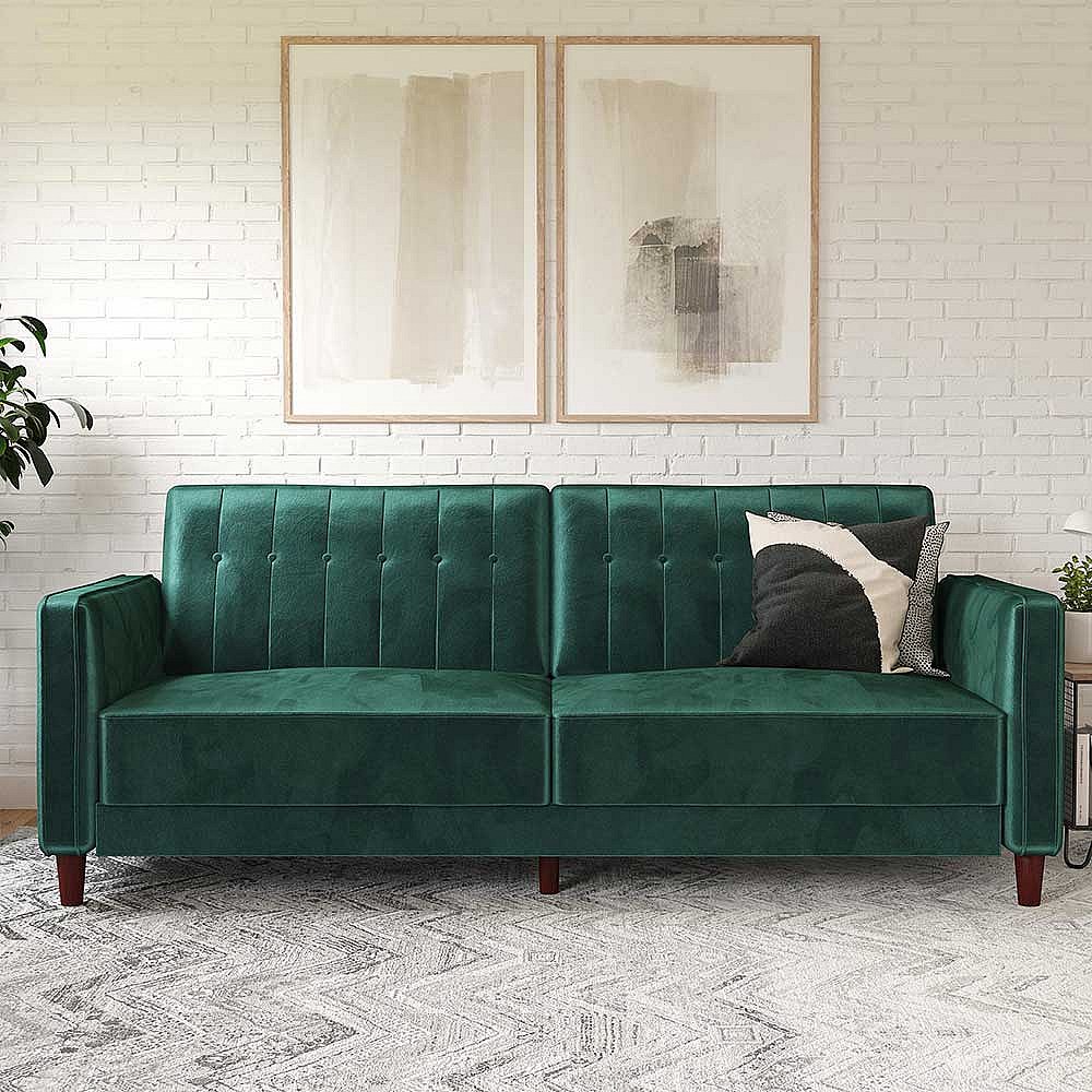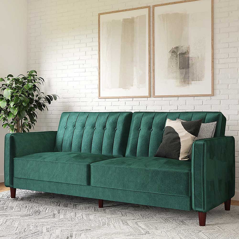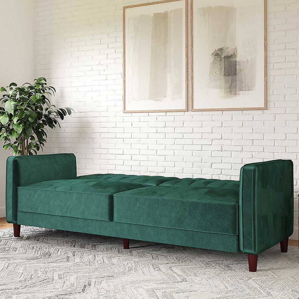 Gr�ne Samt Schlafcouch mit R�cken Klappmechanik 207 cm breit