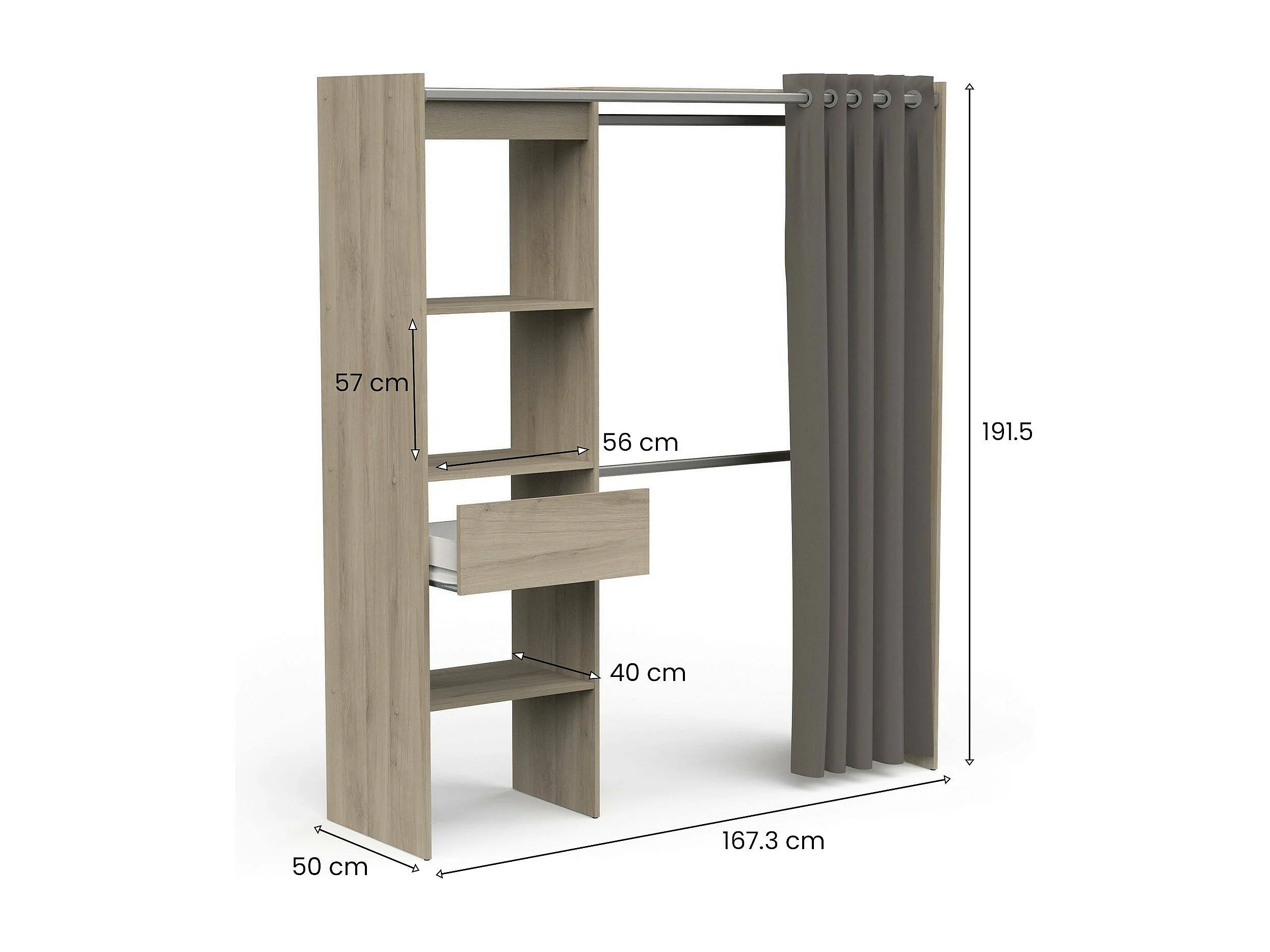 Großer Kleiderschrank Dcourtne, Schlafzimmermöbel, Schrank, Garderobe, 167x50 h192 cm, Eiche und Mattweiß