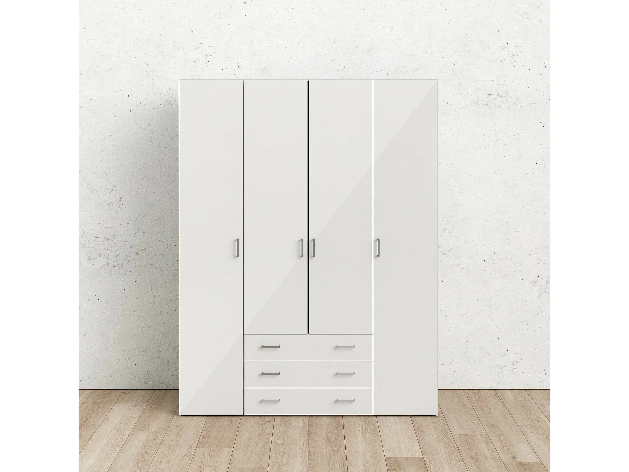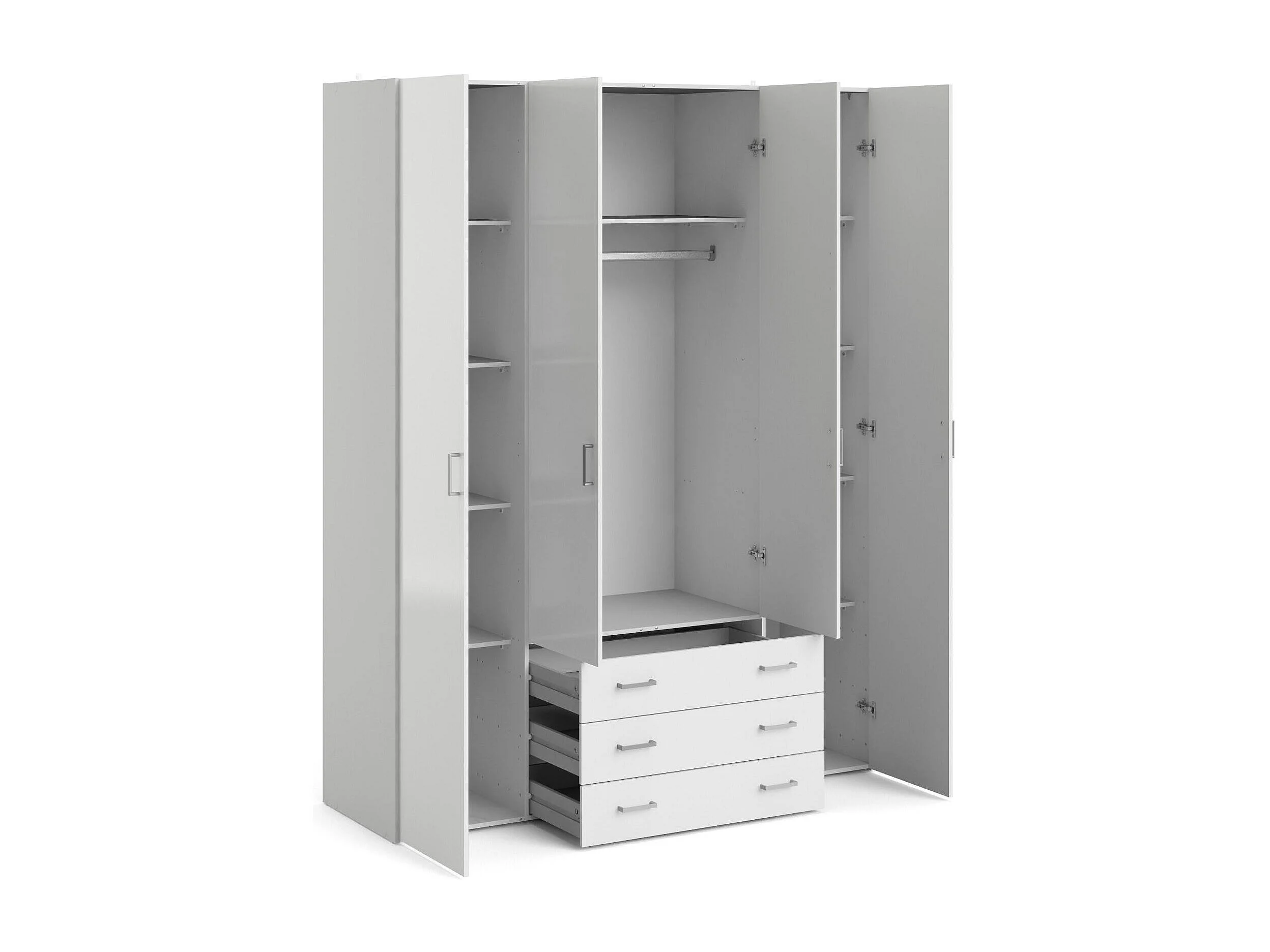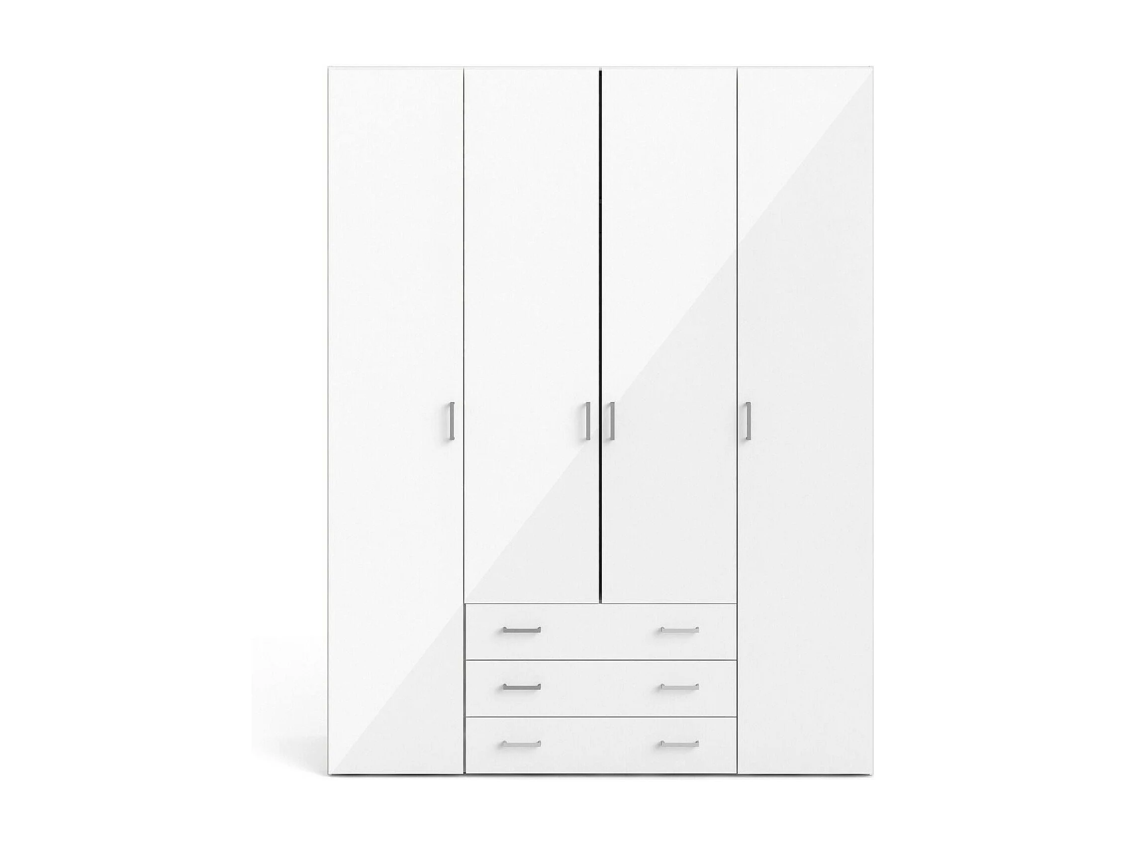 Großer Kleiderschrank Dseren, Schlafzimmermöbel, Schrank, Garderobe, 154x50 h200 cm, Glänzendes Weiß