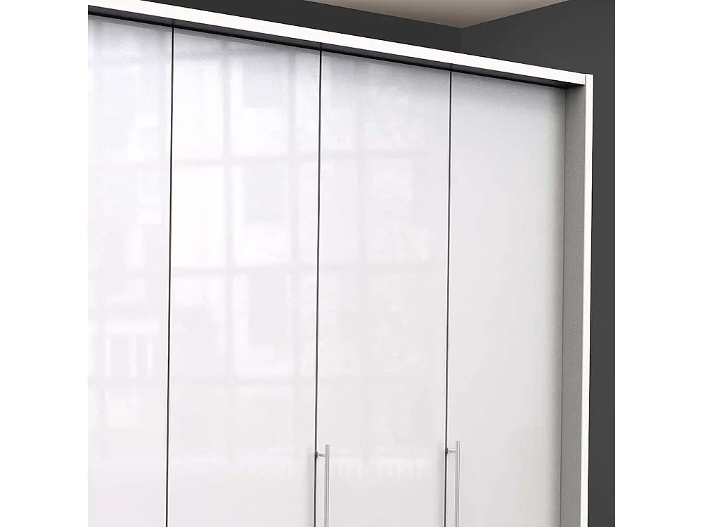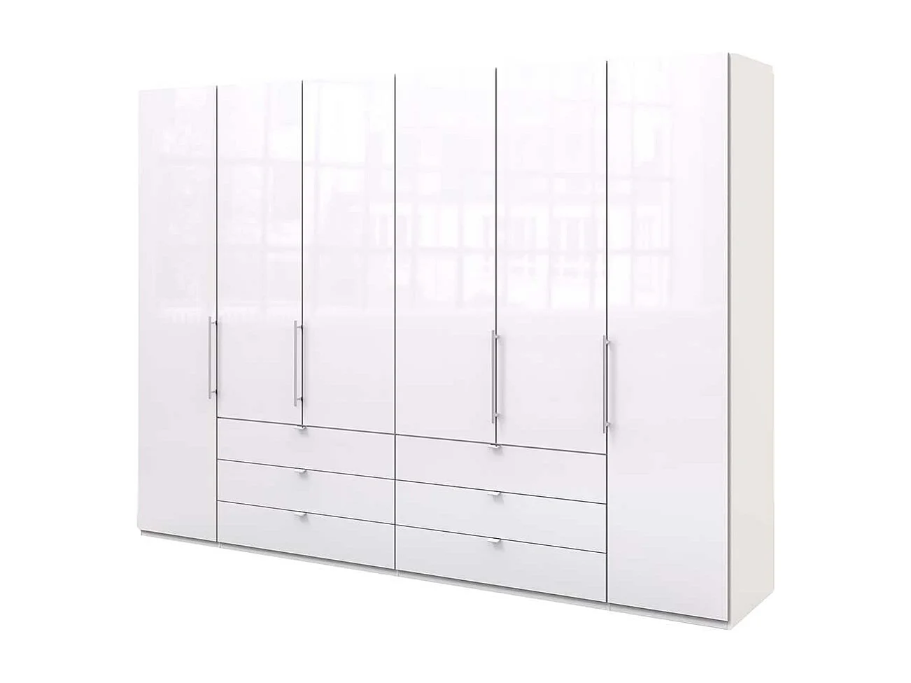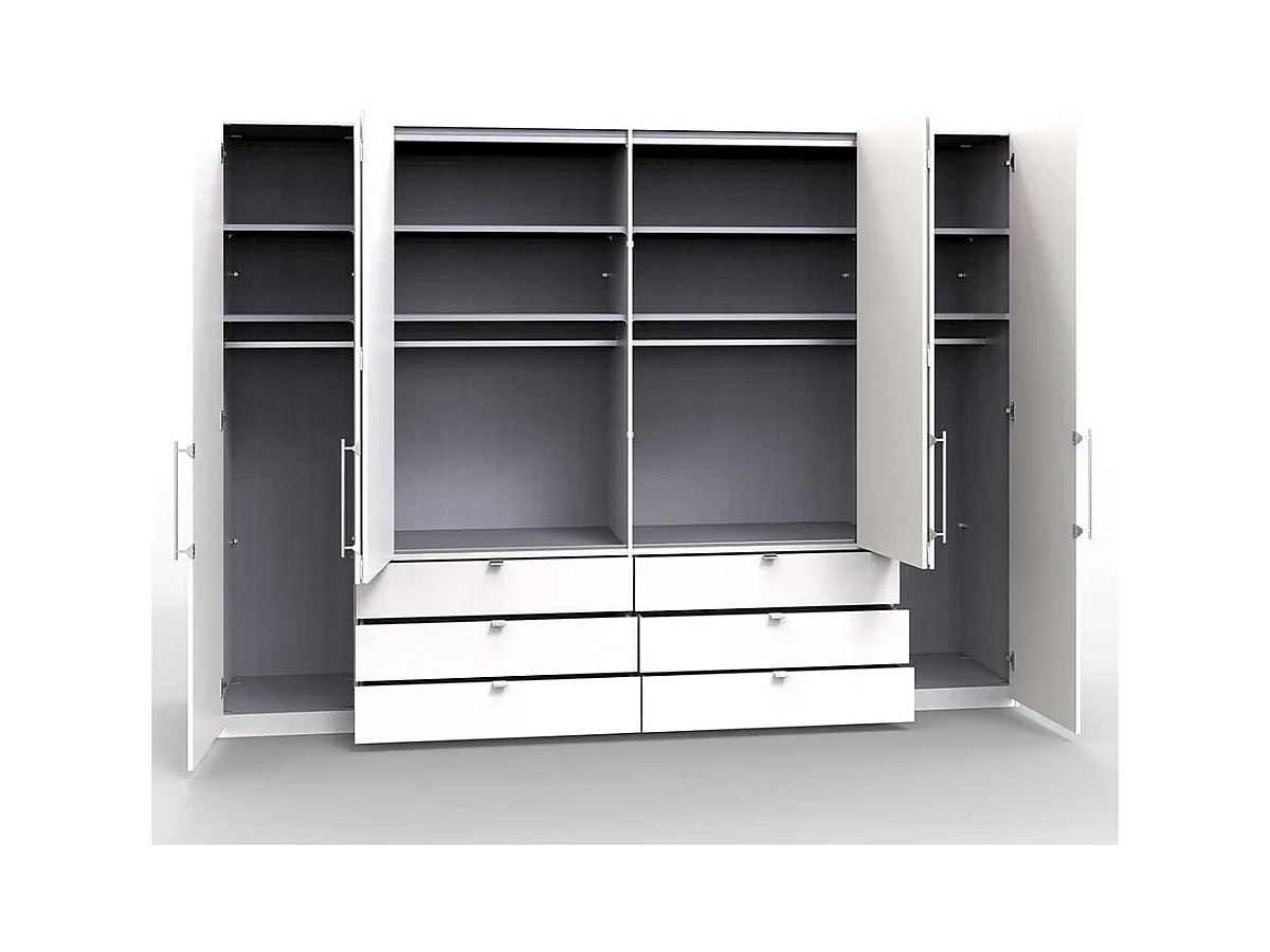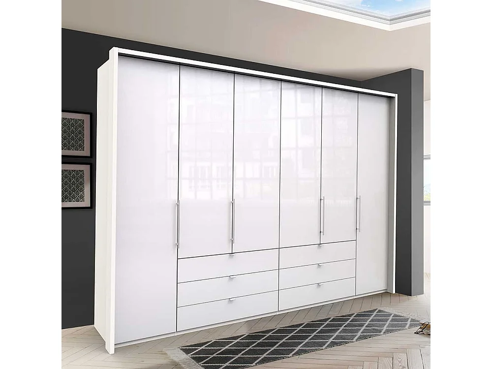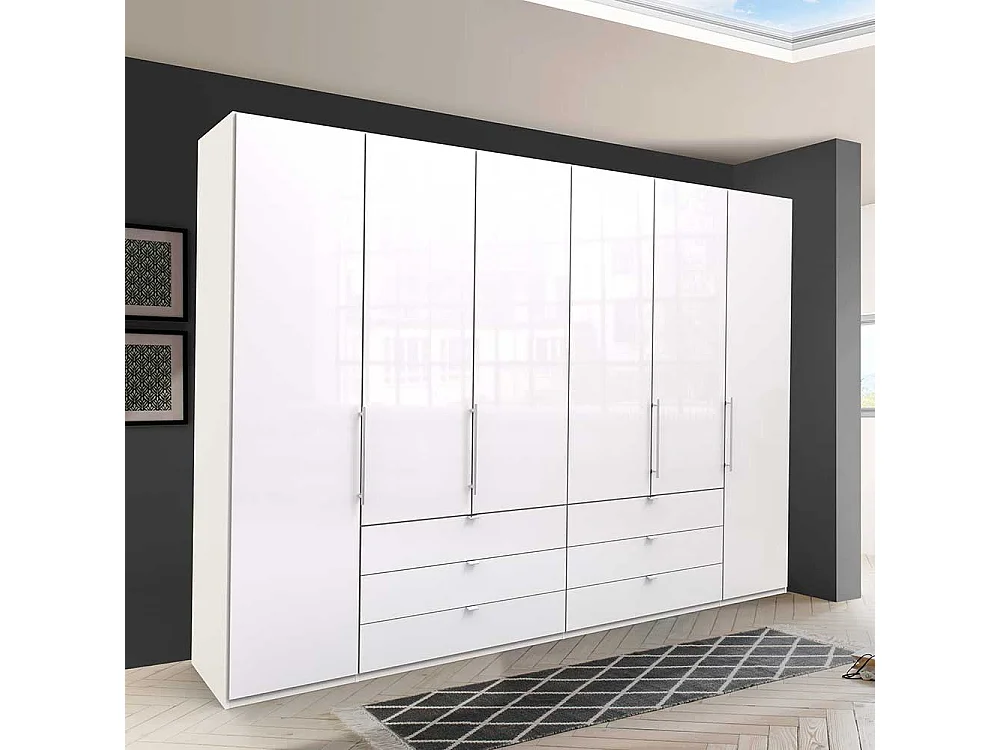 Großer Falttürenschrank in Weiß sechs Schubladen