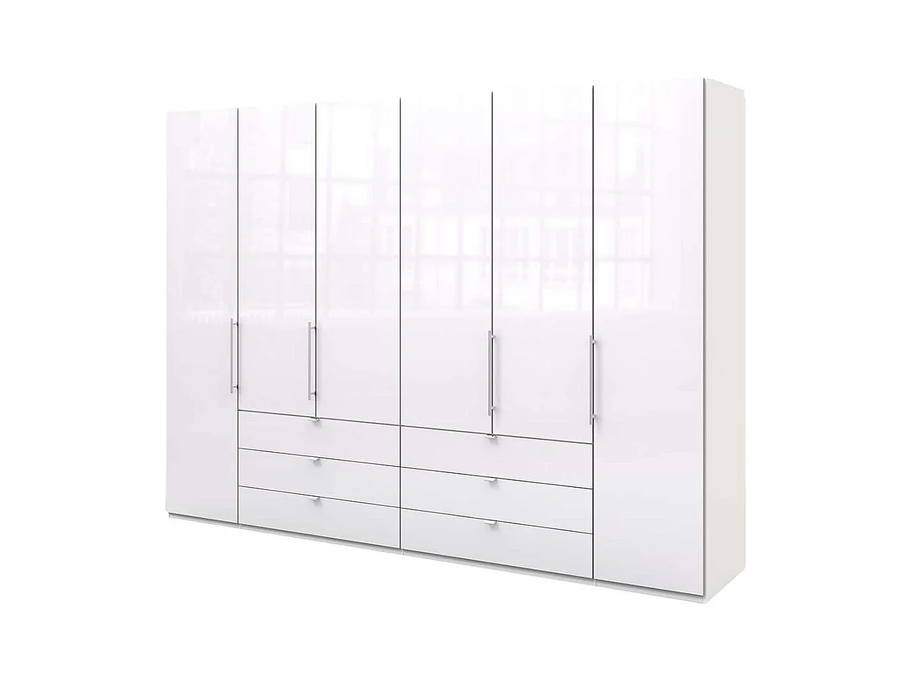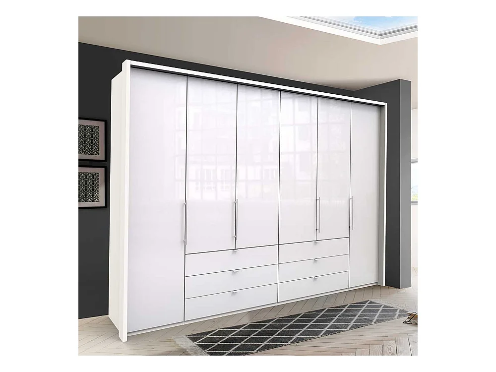 Großer Falttürenschrank in Weiß sechs Schubladen