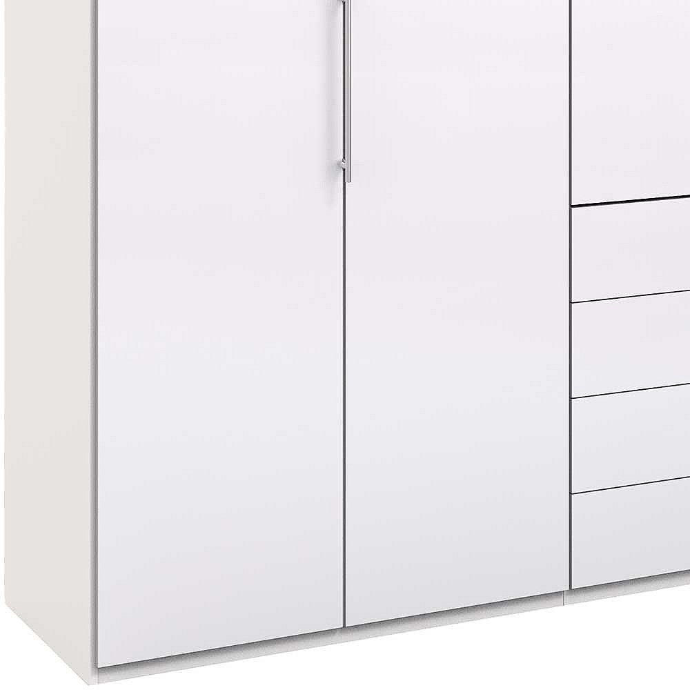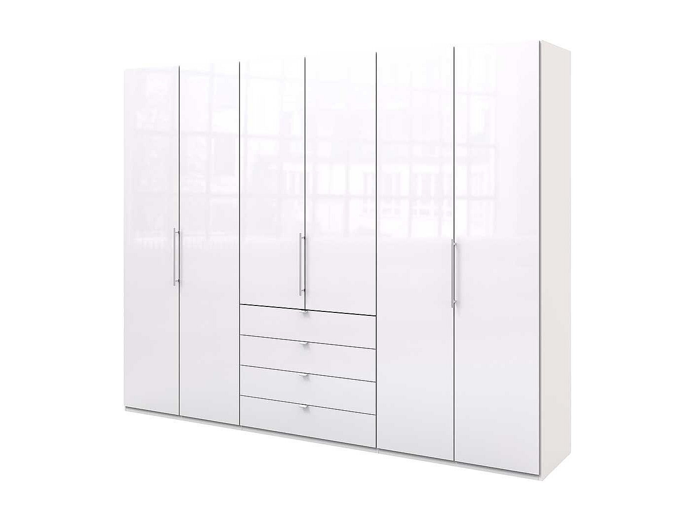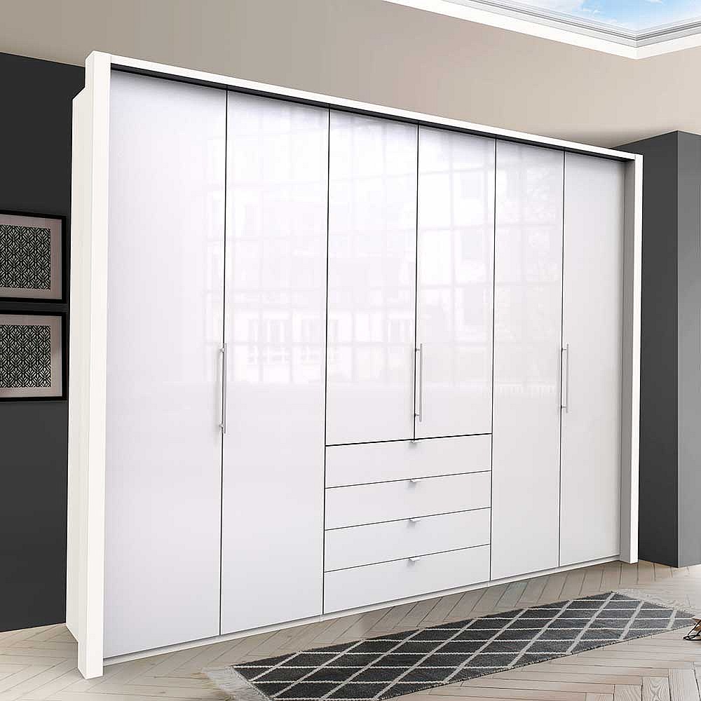 Großer Kleiderschrank in Weiß Glas beschichtet Falttüren und Schubladen