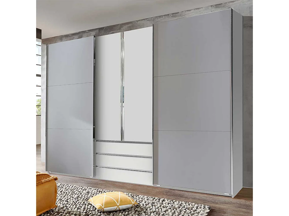 Großer Kleiderschrank mit Dreh- und Schiebetüren Lichtgrau und Weiß