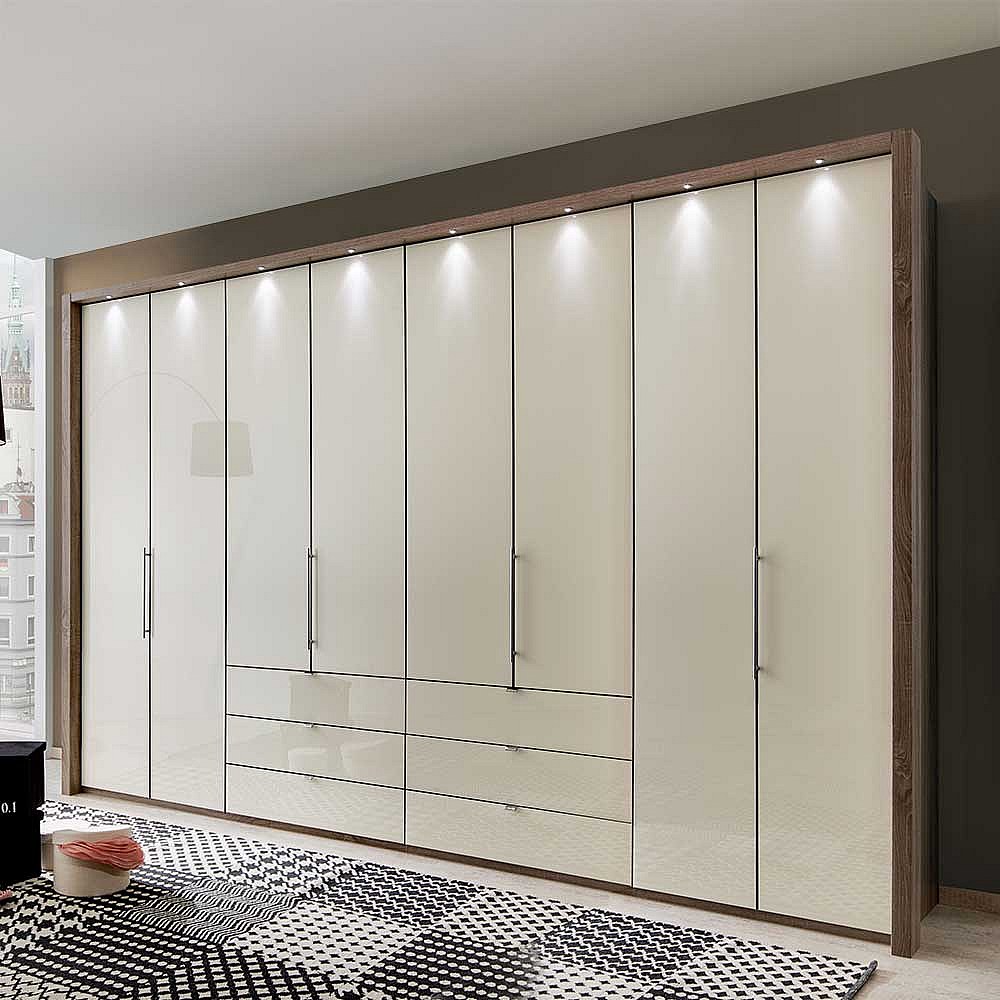 Großer Kleiderschrank mit Falttüren Creme Weiß