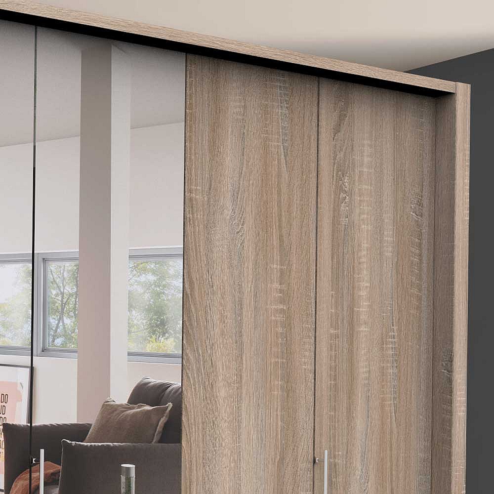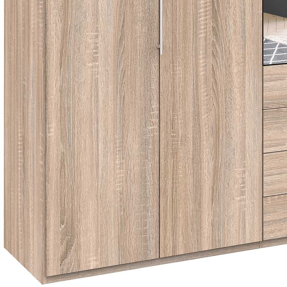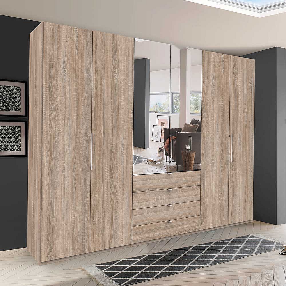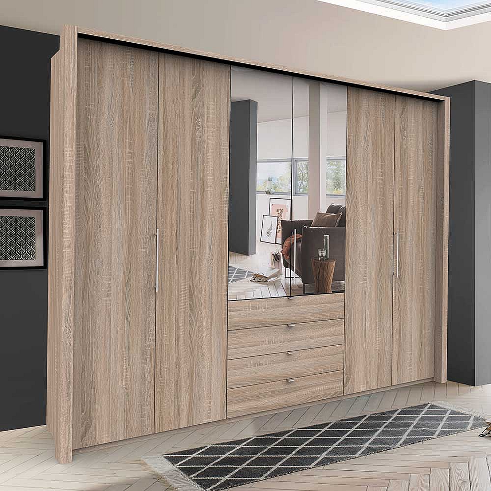 Großer Spiegel Kleiderschrank mit vier Schubladen und Spiegel Eiche Sägerau