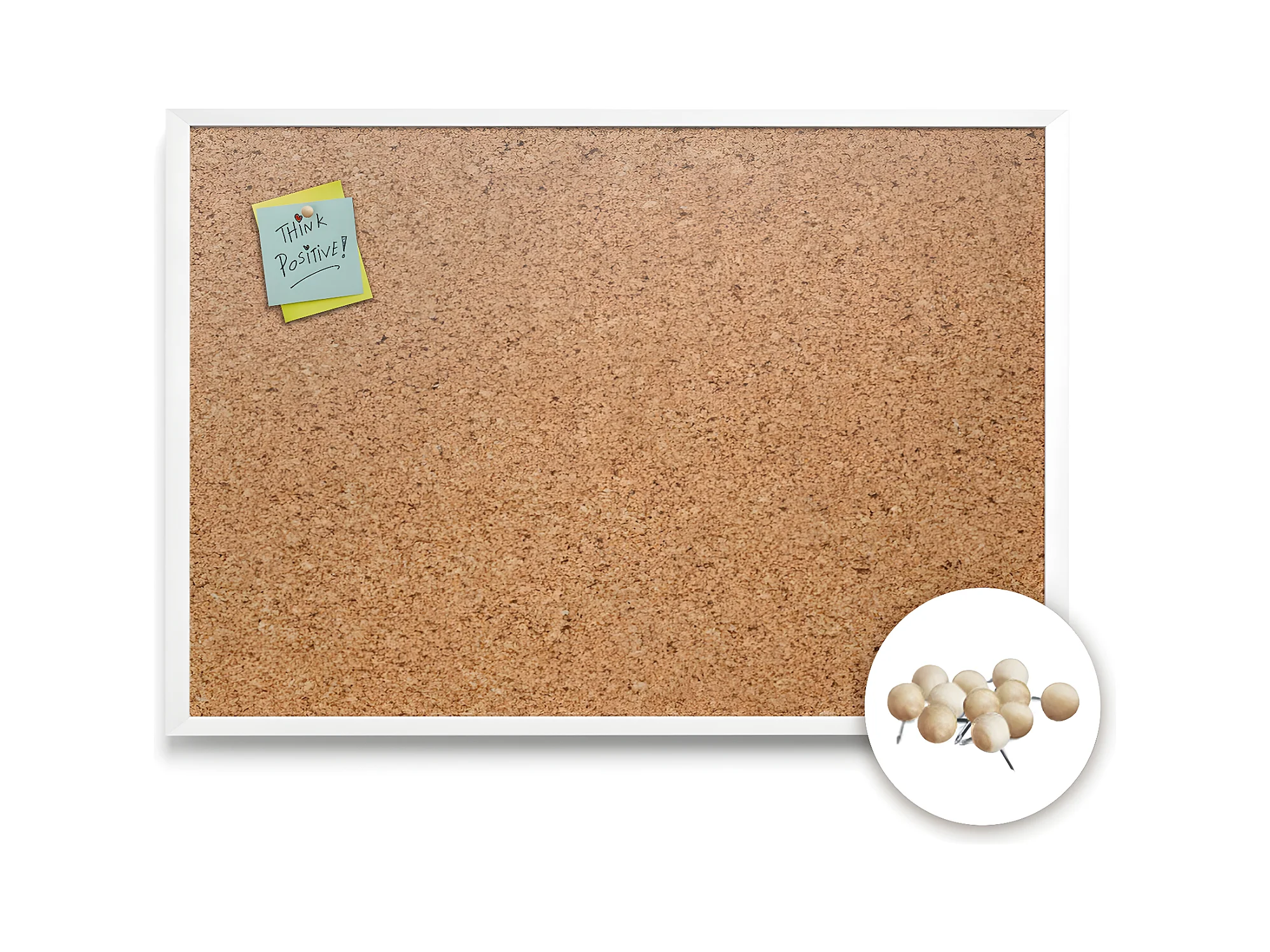 Große Korktafel 120x90 in weißem Rahmen, vertikale horizontale Montage + Stifte XXL-Korktafel für Zuhause und Büro, ästhetische Organisation von Notizen