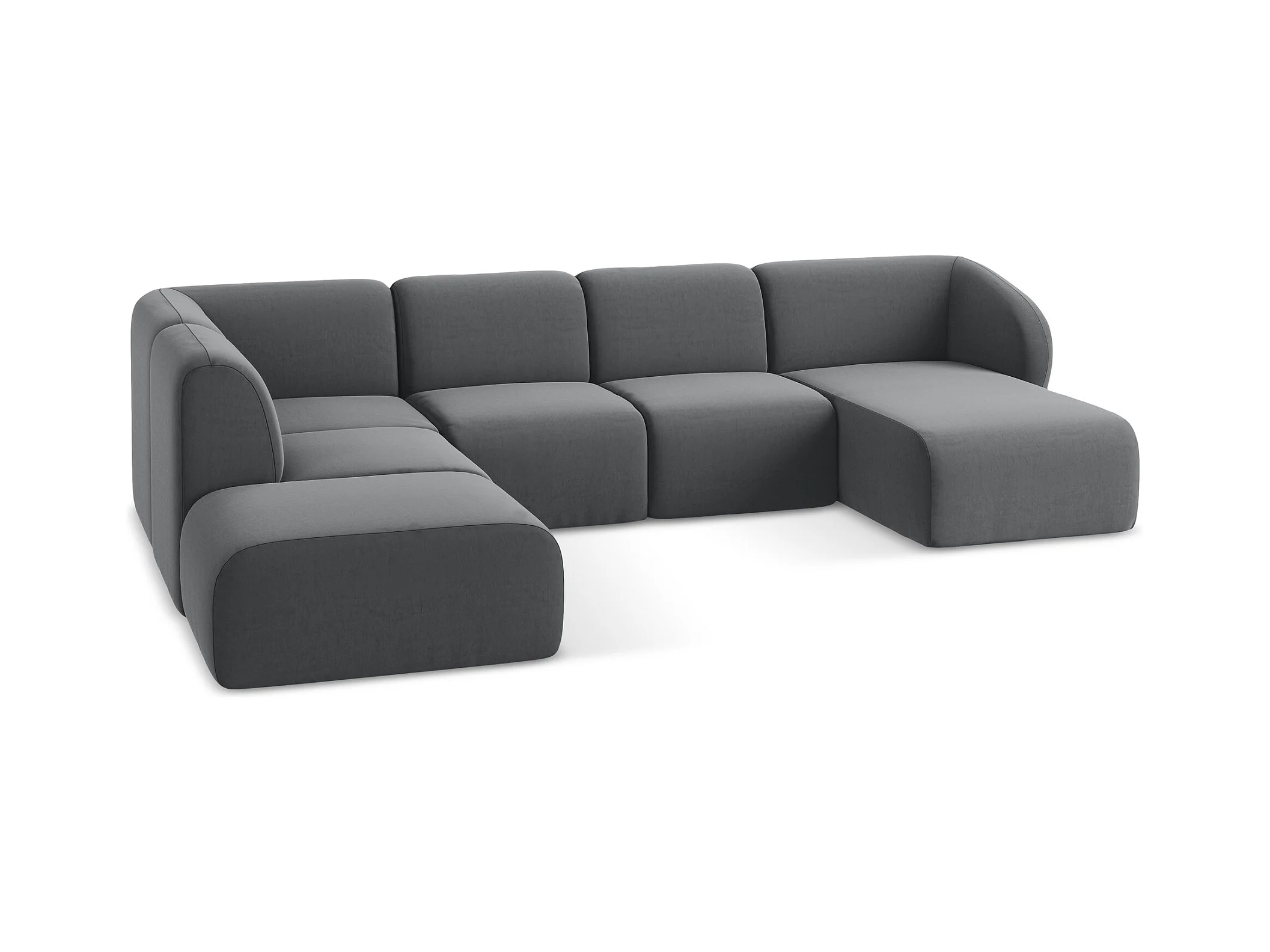 Große Wohnlandschaft Links - - Samt - Stahl - LANI