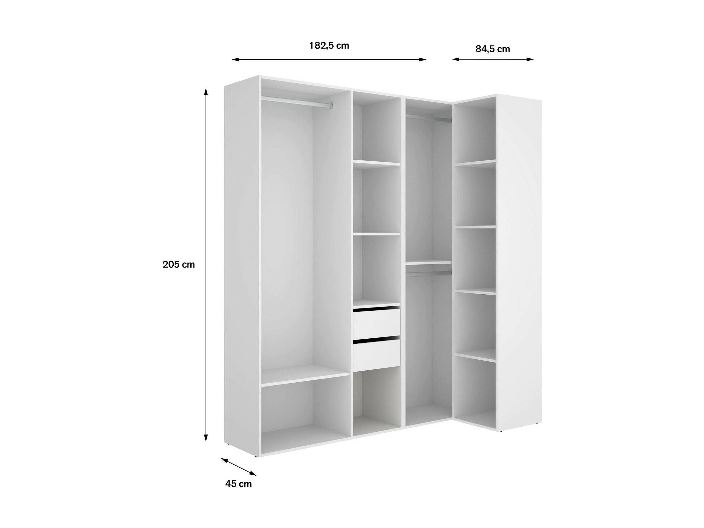 Großer Kleiderschrank Dda, Schlafzimmermöbel, Schrank, Garderobe, 183x85 h205 cm, Weiß und Eiche