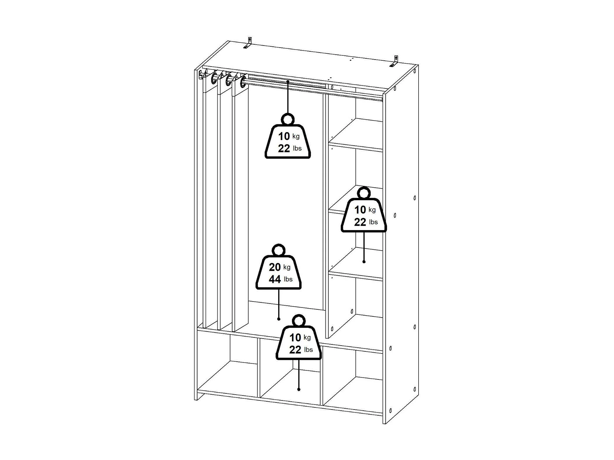 Großer Kleiderschrank Dseverin, Schlafzimmermöbel, Schrank, Garderobe, 105x48 h180 cm, Eiche und Beige