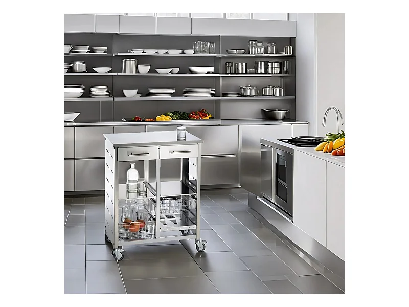 Großer Küchenwagen, sehr elegant und mit großem Fassungsvermögen 92*72,5*45,5cm – MALMÖ INOX