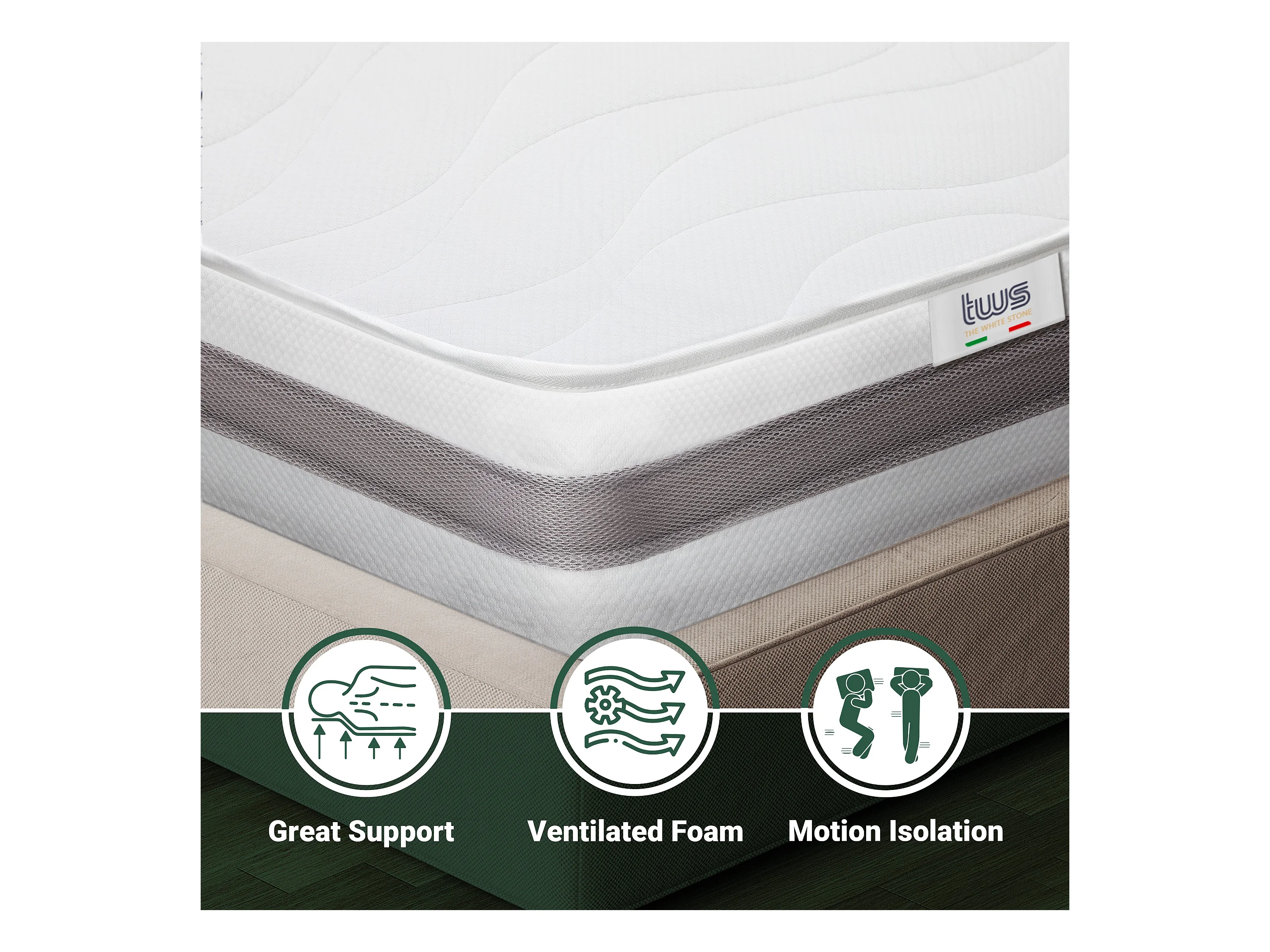 Großes Einzelbett Matratze 130x200 Memory Orthopädisch, Antibakteriell, Anti-Milben, Anti-Allergie.| Höhe 16 cm | Made in Italy