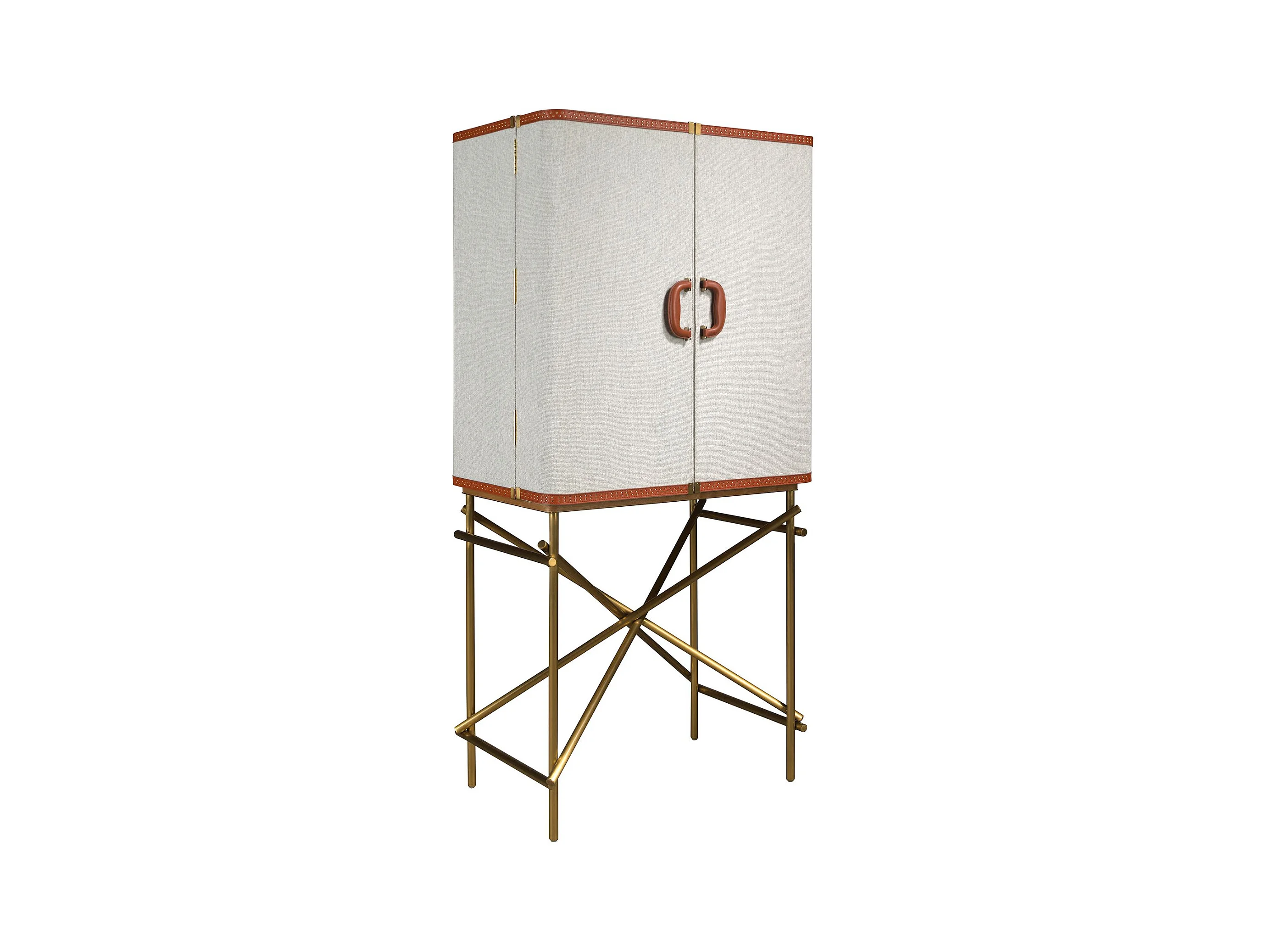 Großes Sideboard, Stoff, Nussbaum und goldfarbener polierter Stahl 3272 ANGEL CERDA