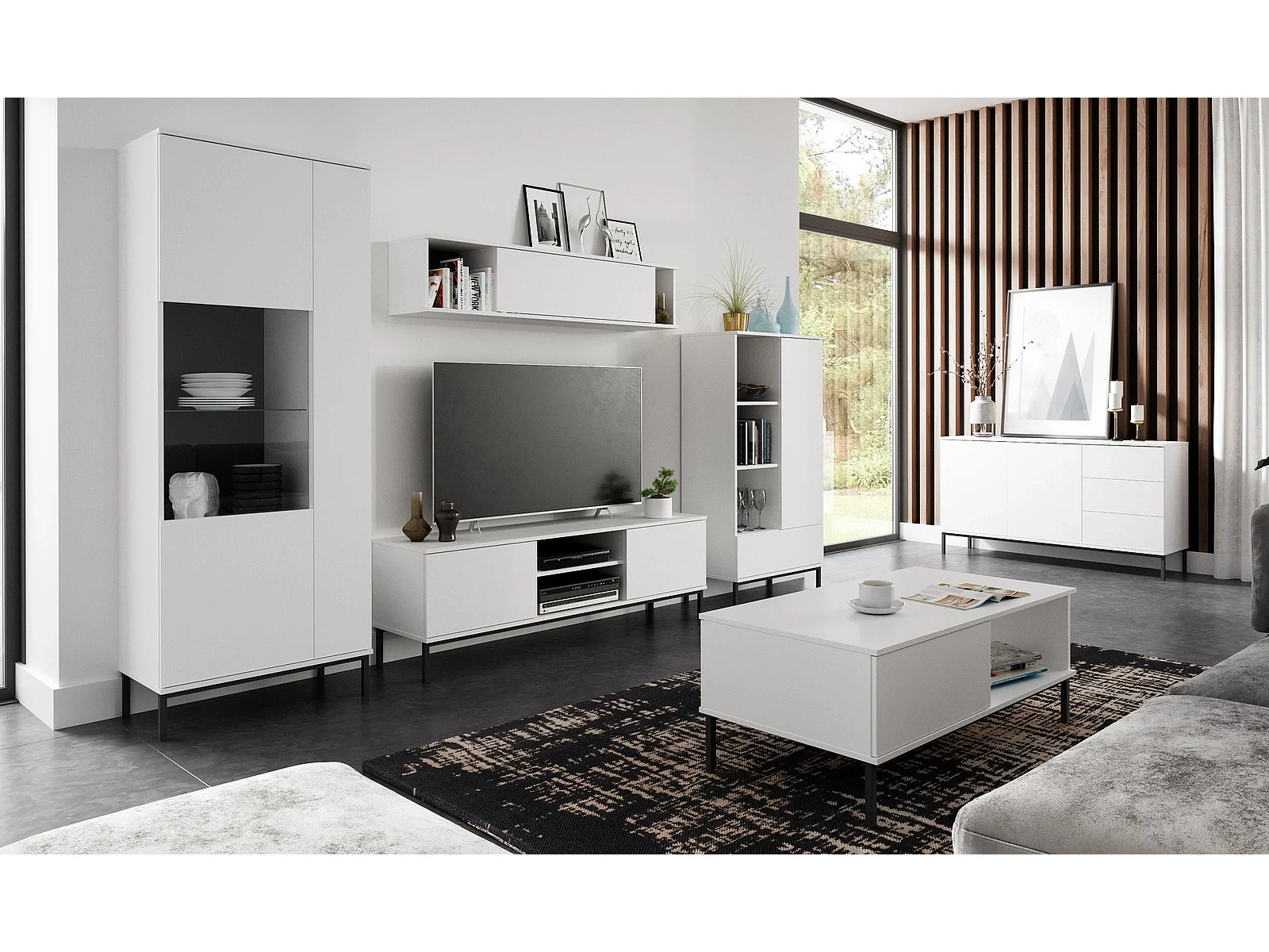 Großes Wohnwand Komplettset Dallas I - Matt Weiß (6-teilig)
