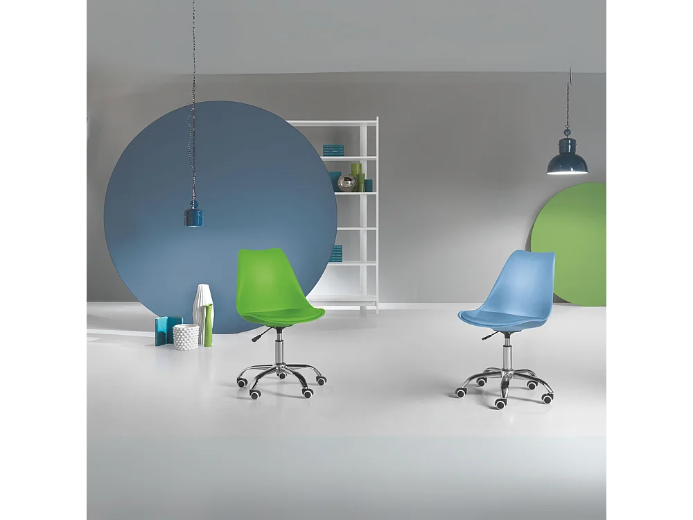 Grüner Bürodrehstuhl "Dorian" aus Polypropylen mit Sitz aus Kunstleder und verchromtem Metallgestell cm 49x47 82/96h