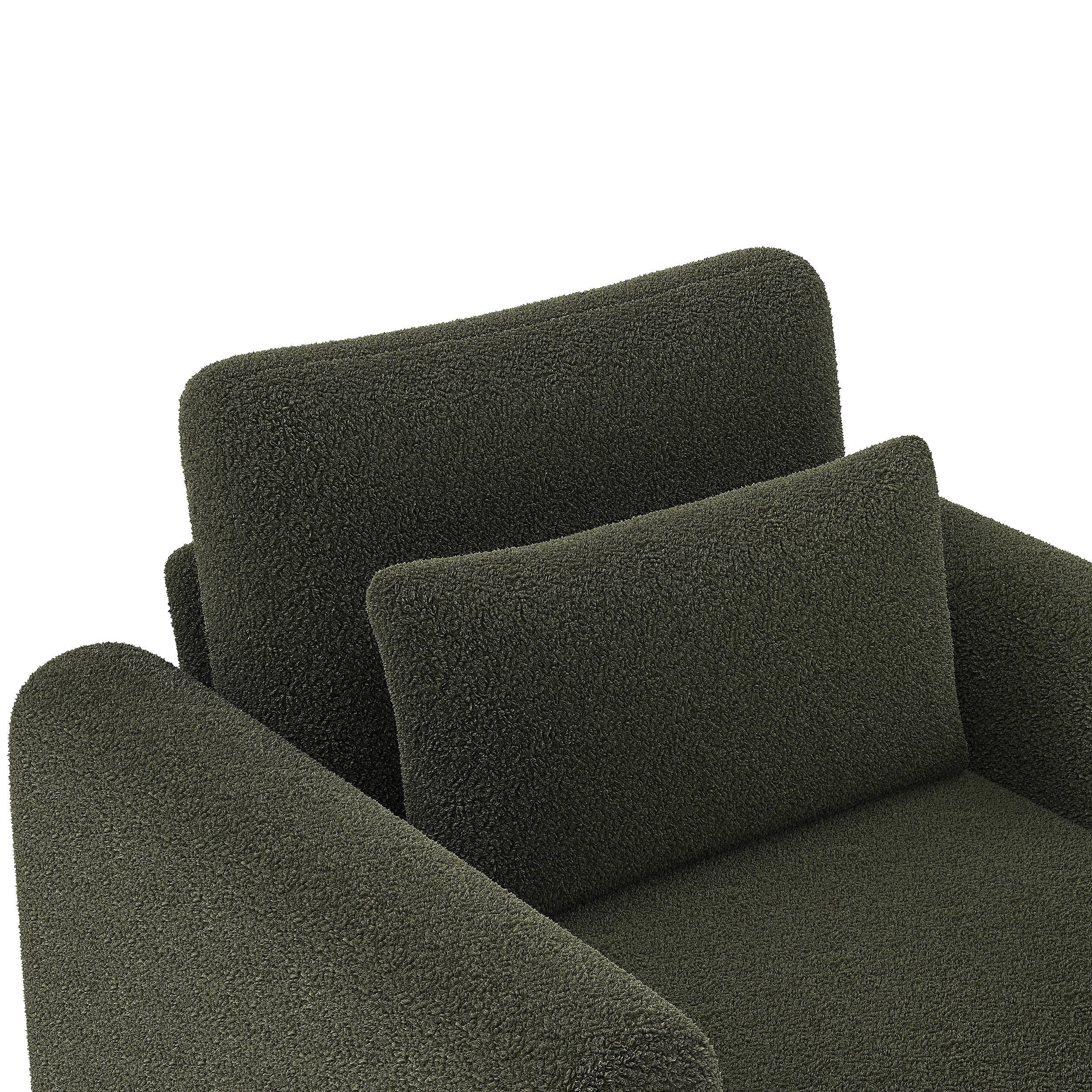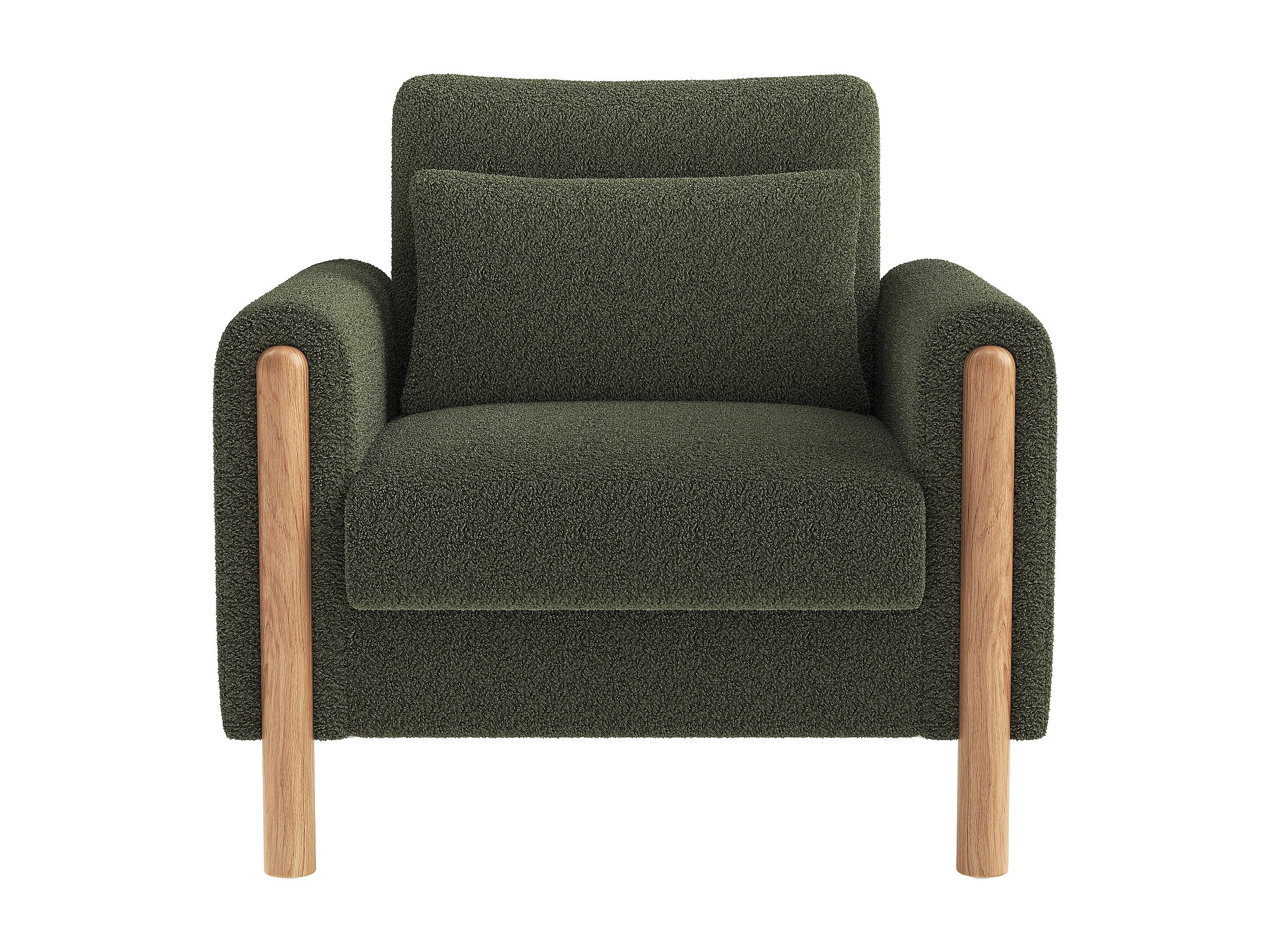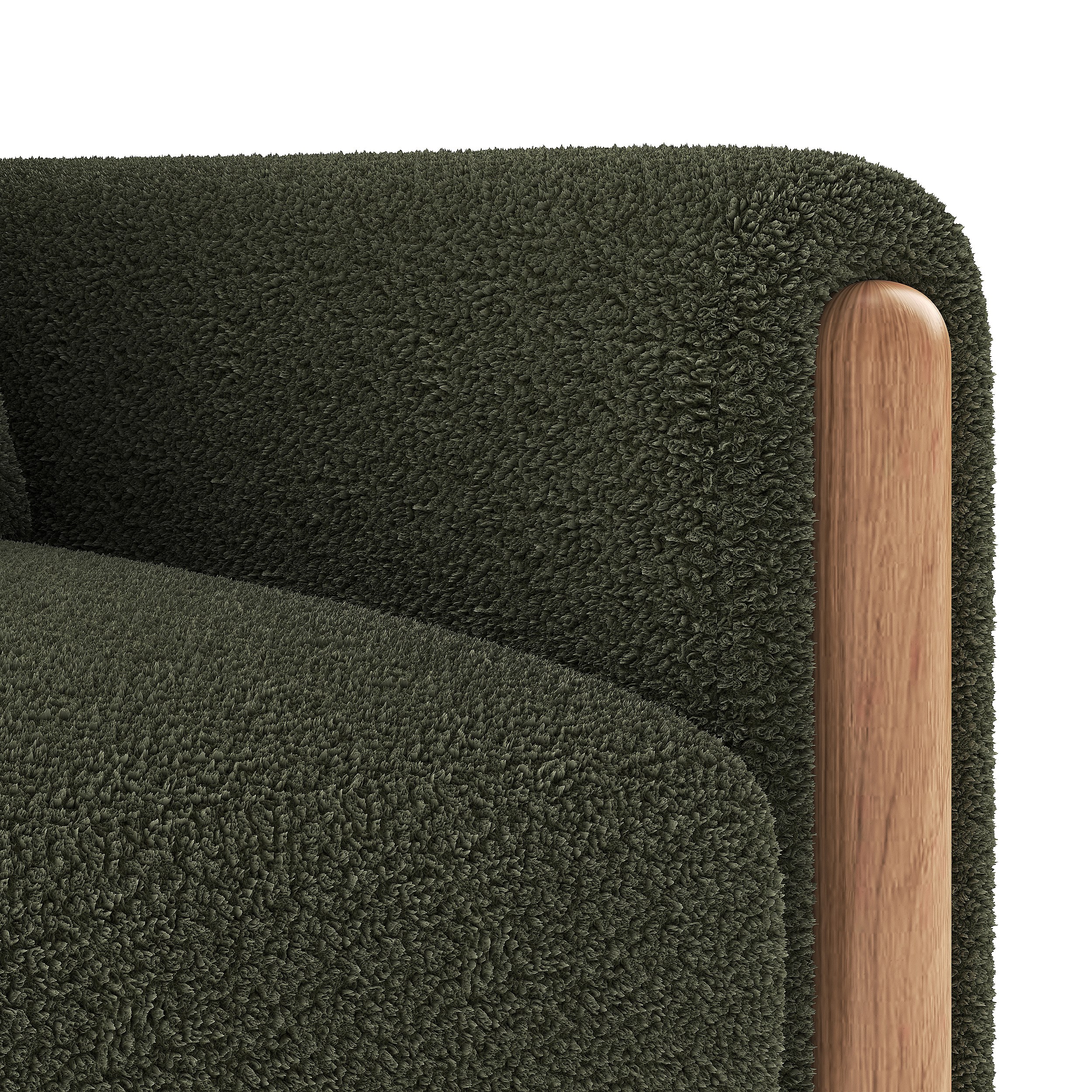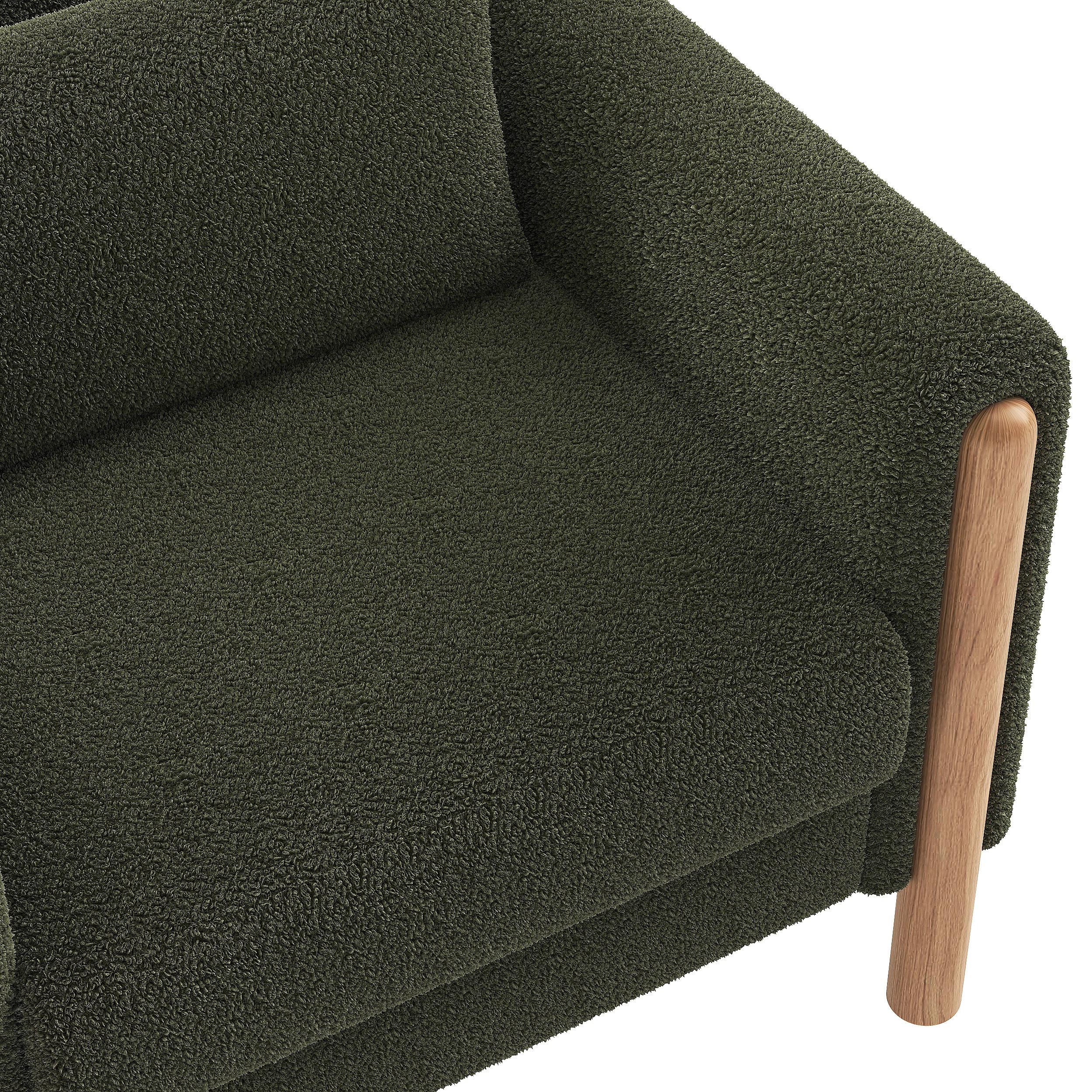 Grüner Sessel - Sessel mit Rückenlehne und Armlehnen - Holzbeine und Kissen - Teddysamt