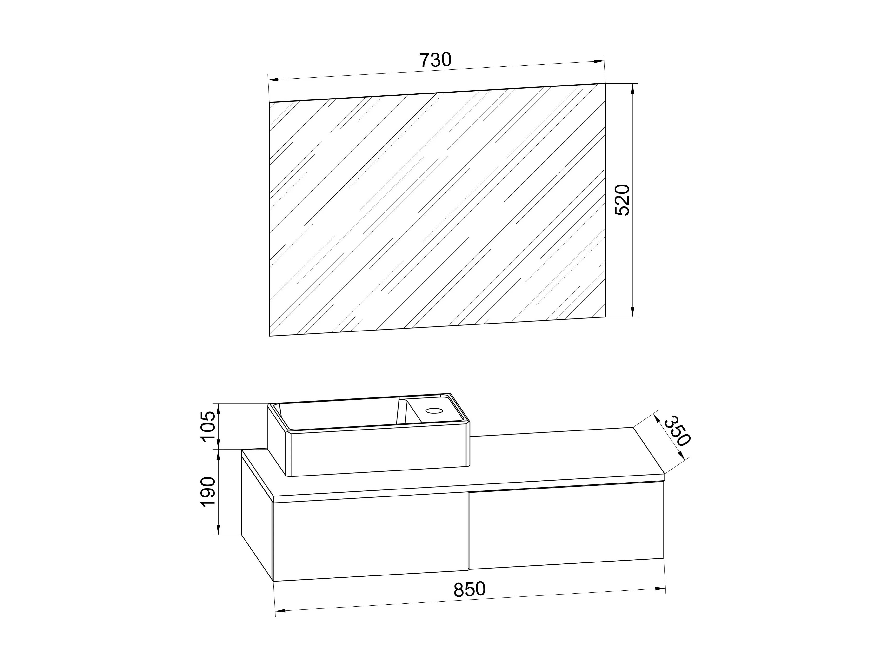 3-tlg Gäste WC Waschplatz Waschtisch Gudas Spiegel