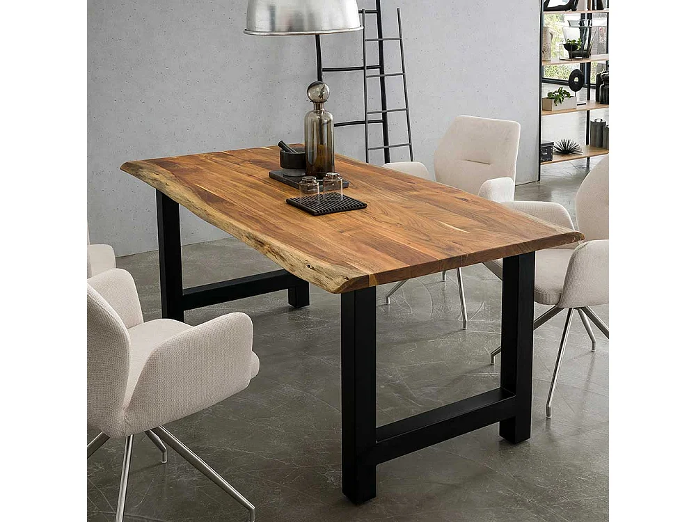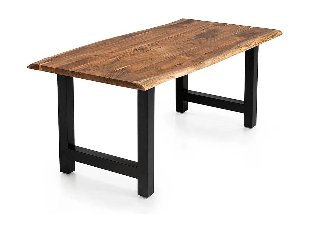 H Gestell Esstisch aus Akazie Massivholz & Metall natürlicher Baumkante
