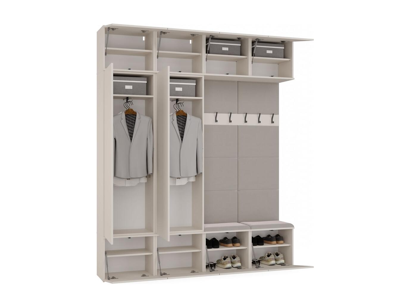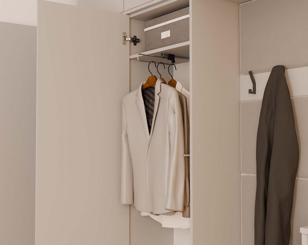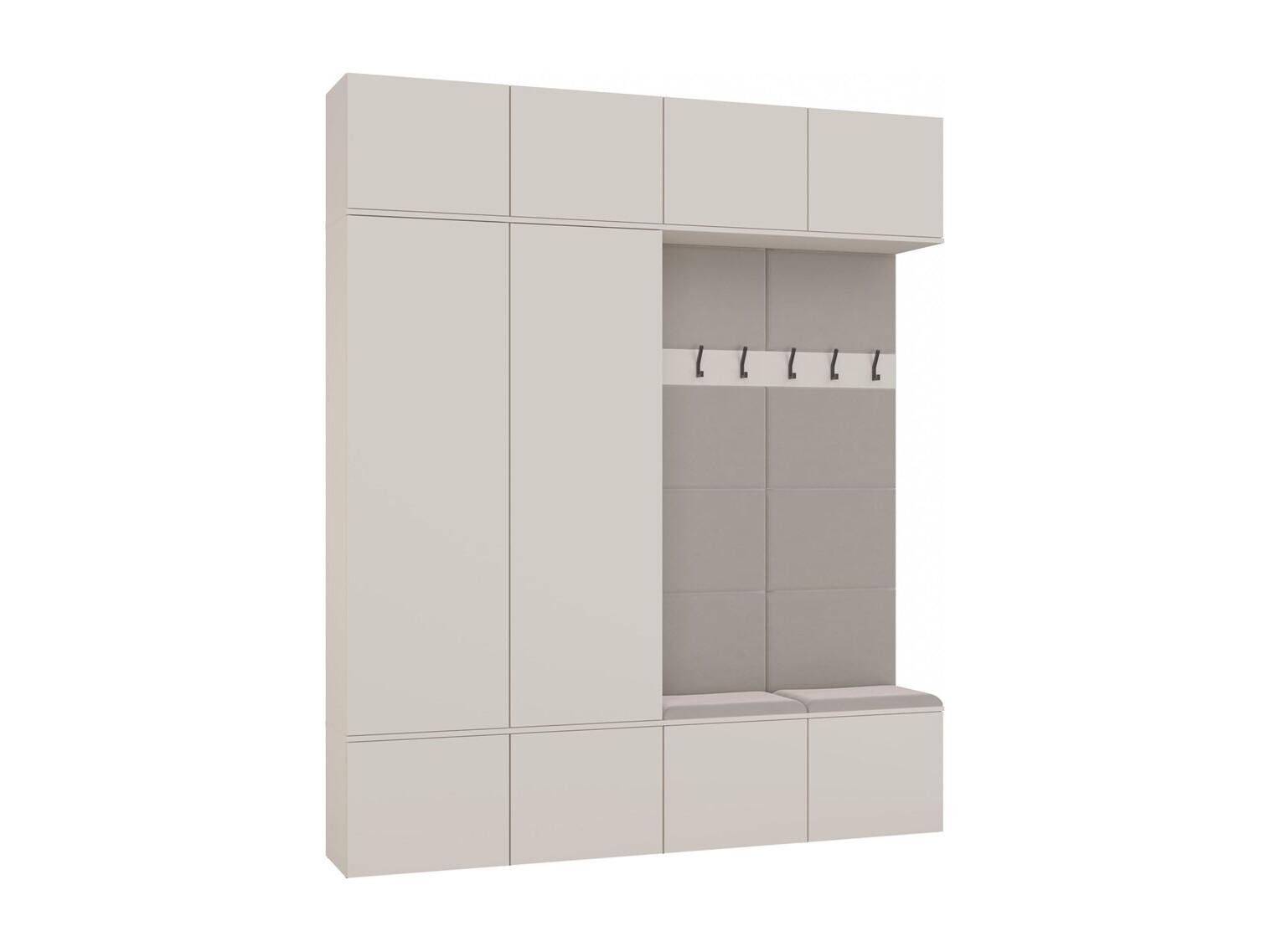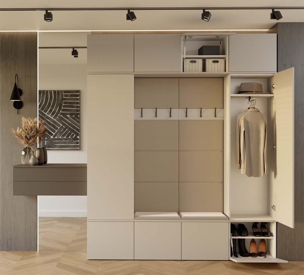 HAGA – Flureinsatz mit 2 Schränken + 2 Garderoben mit 6 Haken + Bank 200 x 35 x 238 cm – Kaschmirbeige