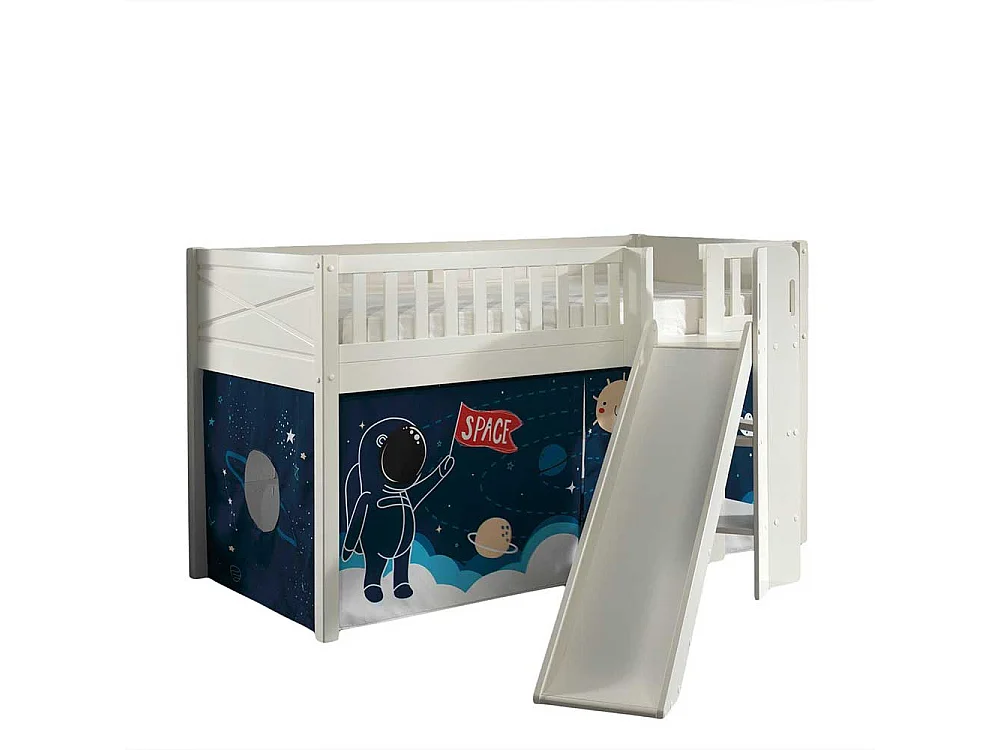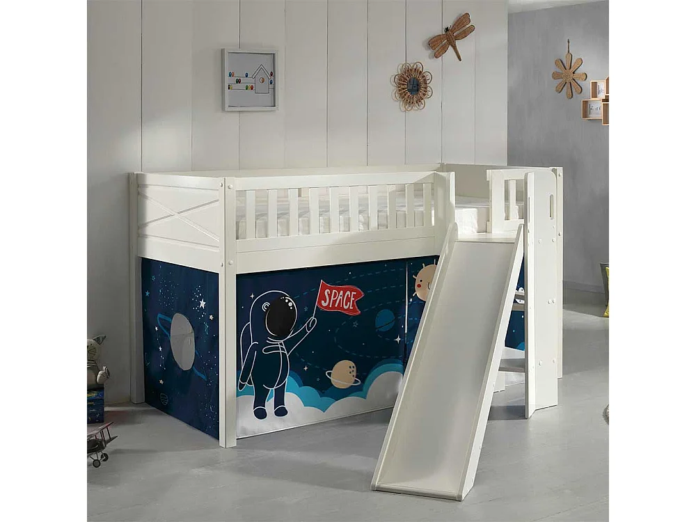 Halbhohes Bett aus Kiefer Massivholz Leiter