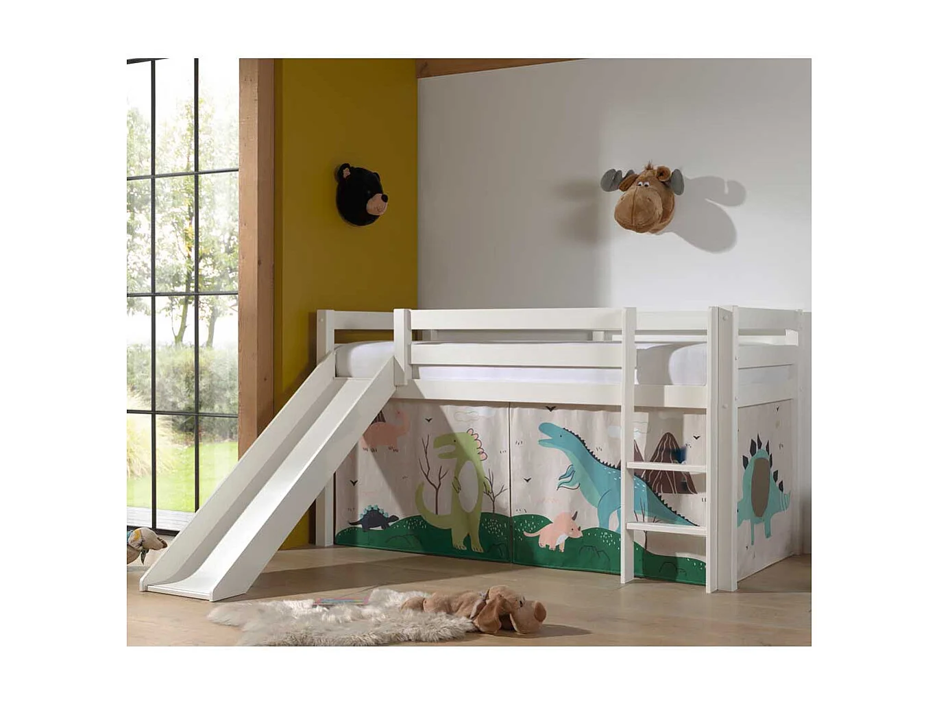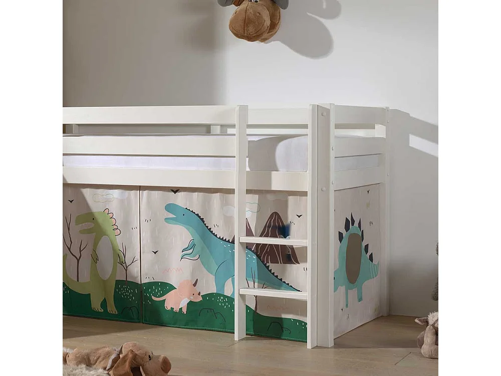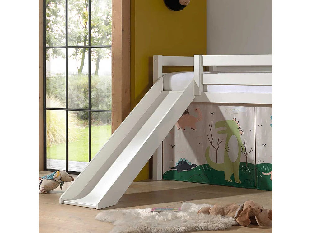 Halbhohes Rutschen Bett in Weiß Dinosaurier Motiv