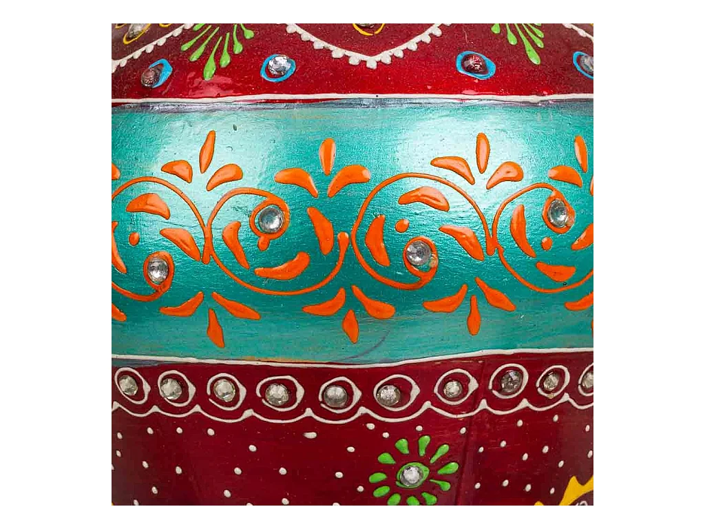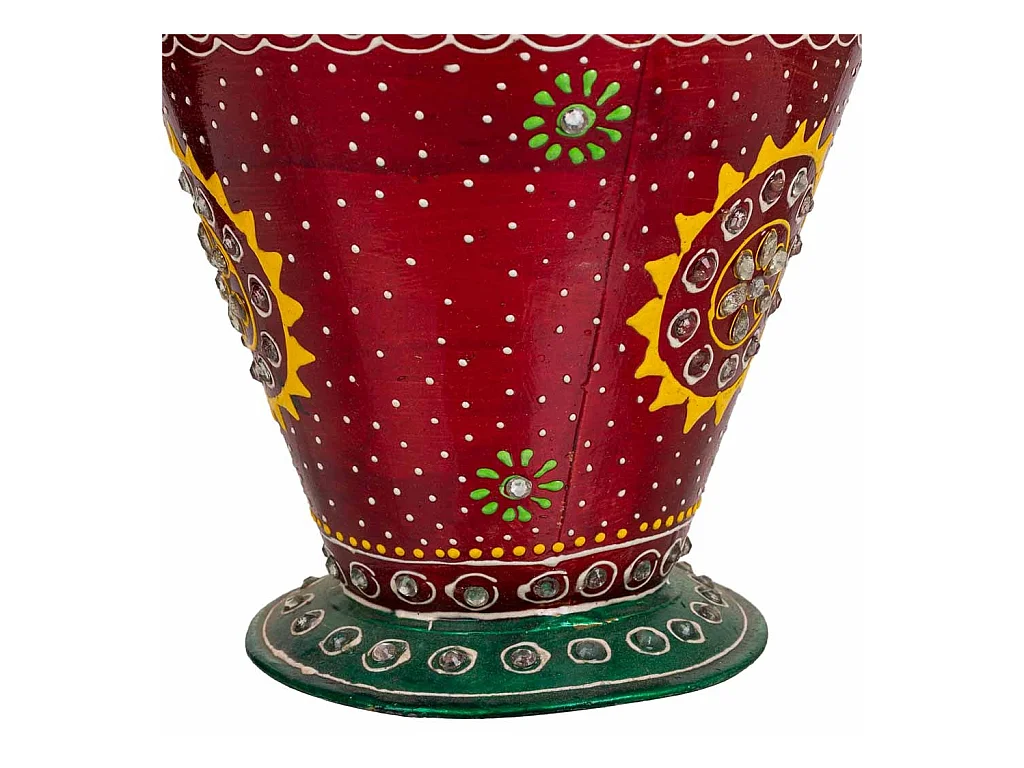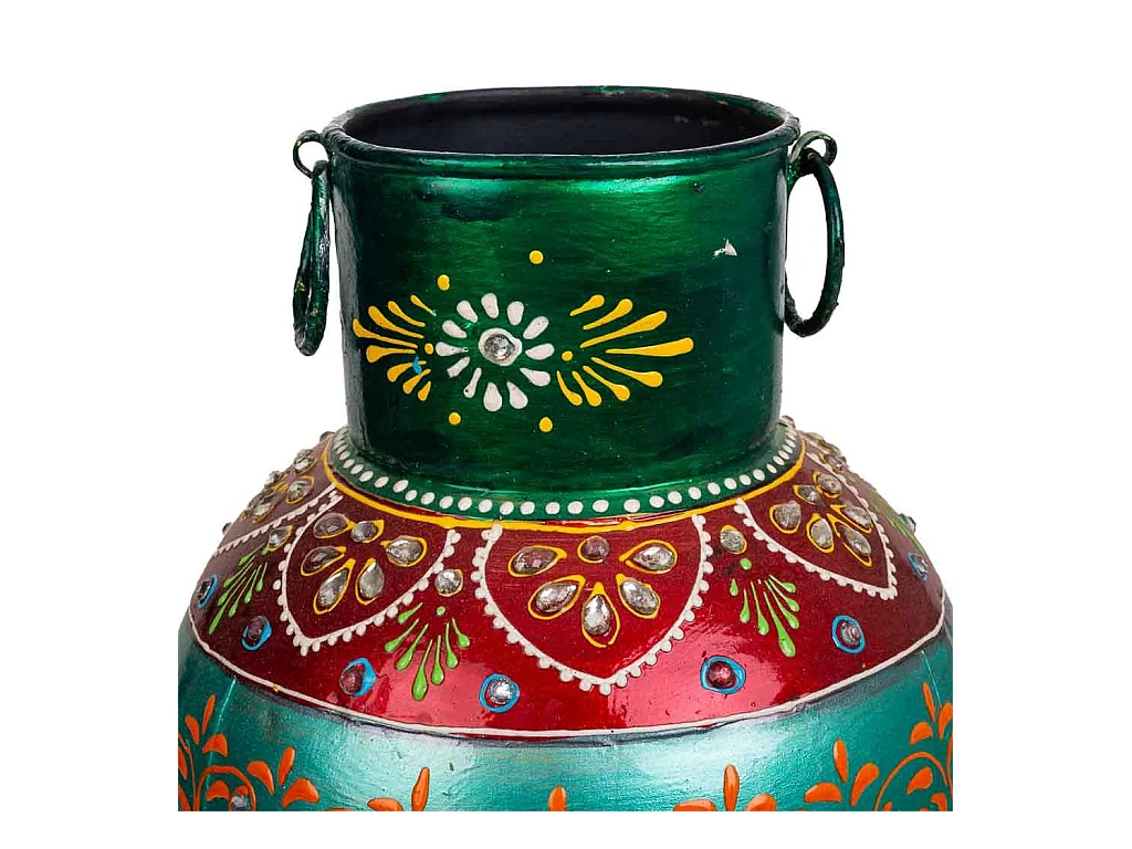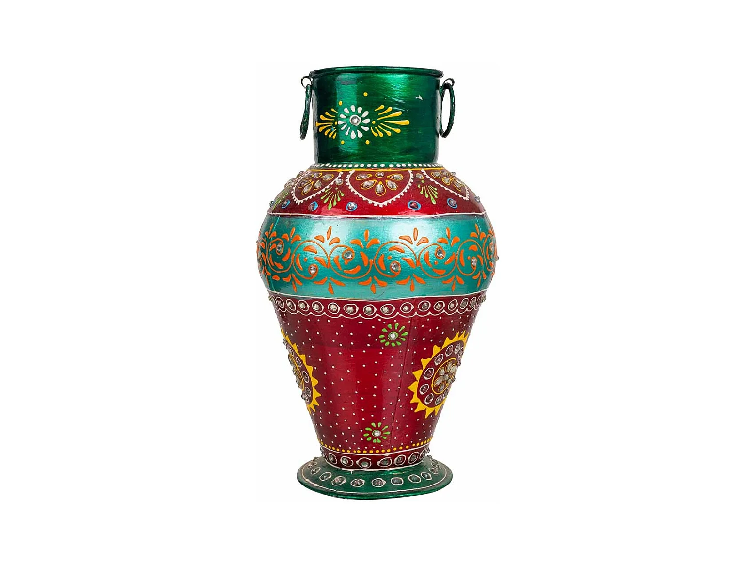 Handgefertigte grün/rot lackierte Metallvase 16x16x30 h cm