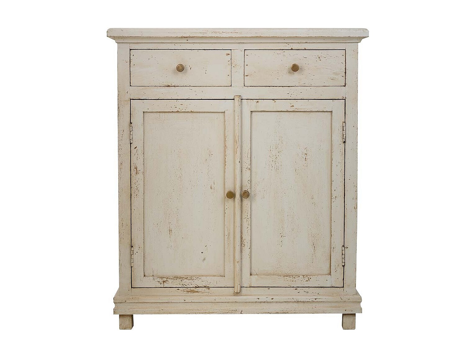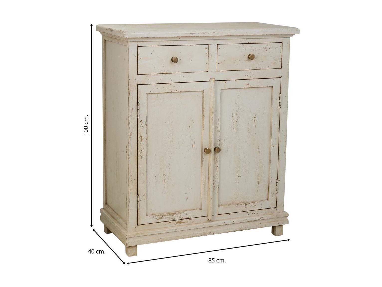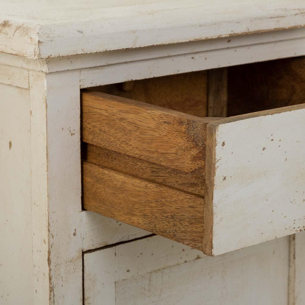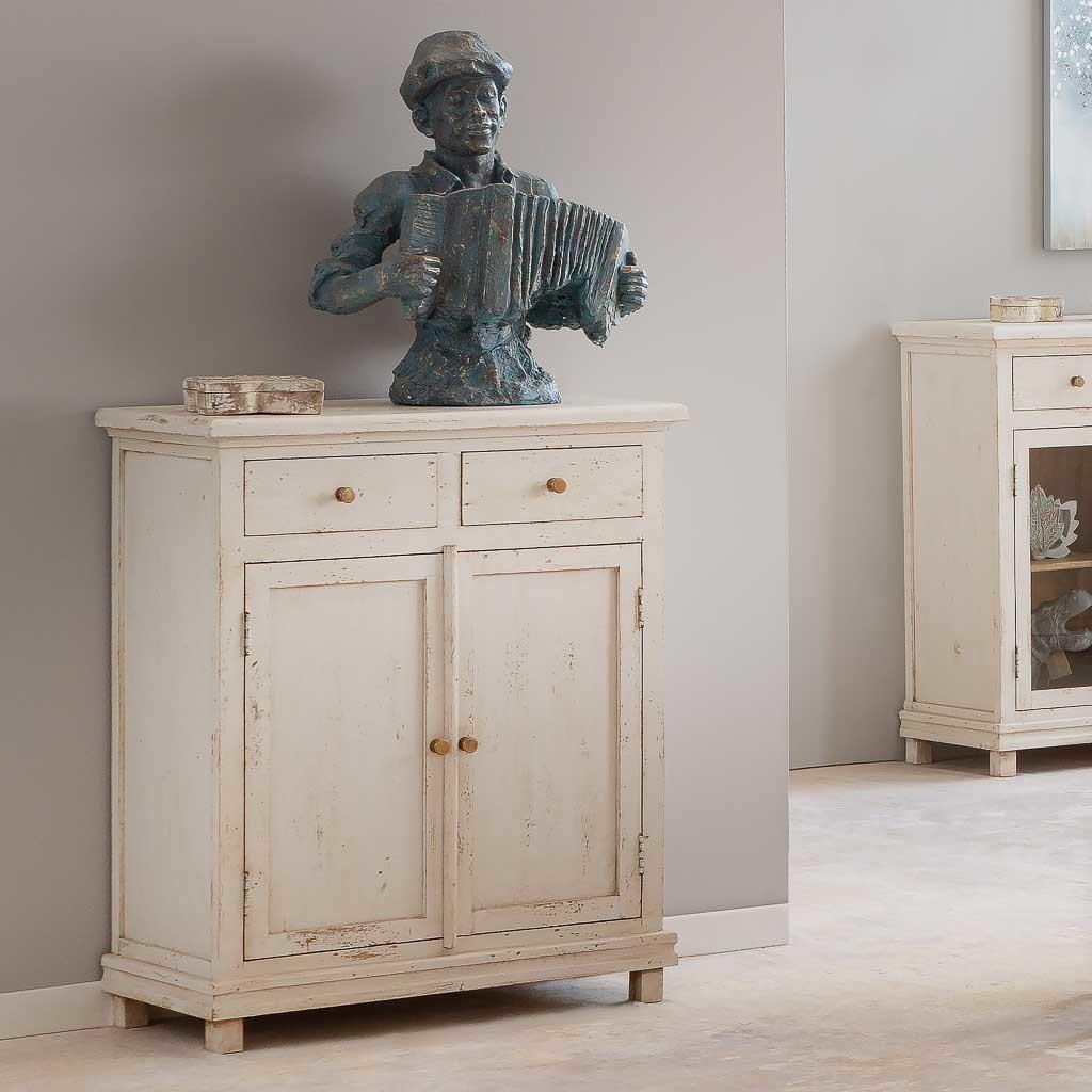 Handgefertigter Flur aus Holz mit 2 Türen und 2 weißen Schubladen