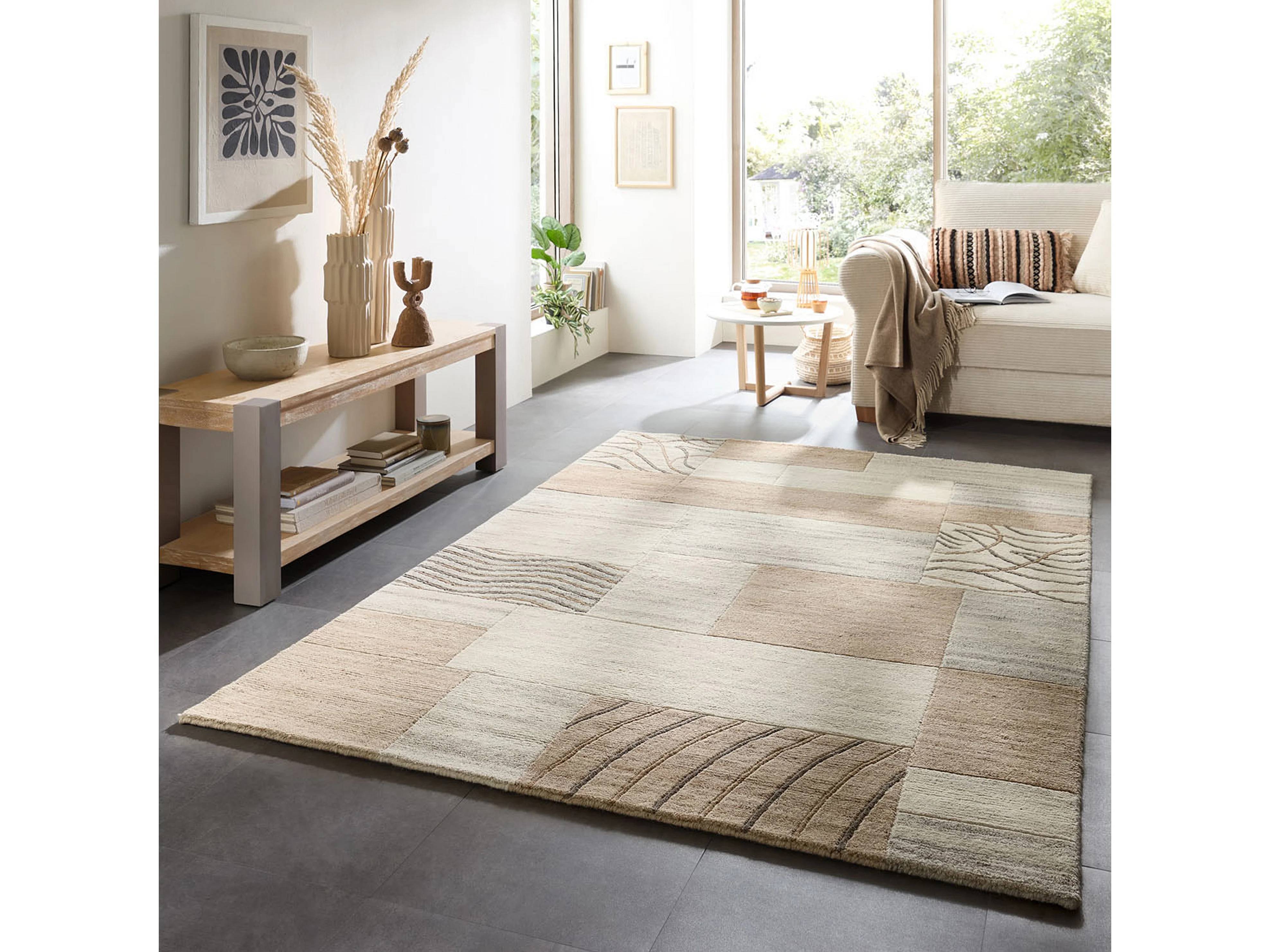 Handgeknüpfter Wollteppich 140x200 cm Natur Grau Nakarta