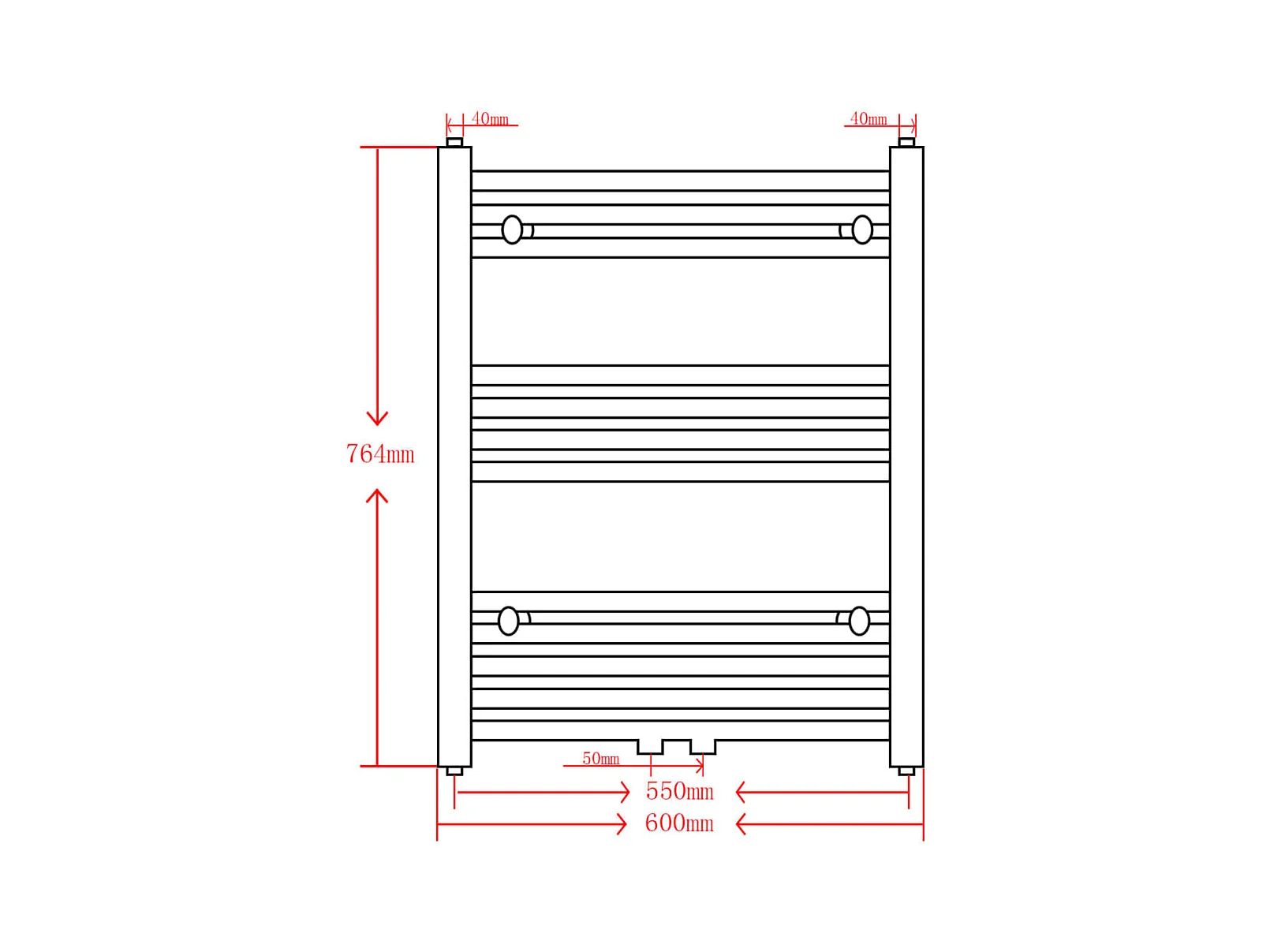 Handtuchheizkörper Warmwasser Gerade Schwarz 600x764 mm