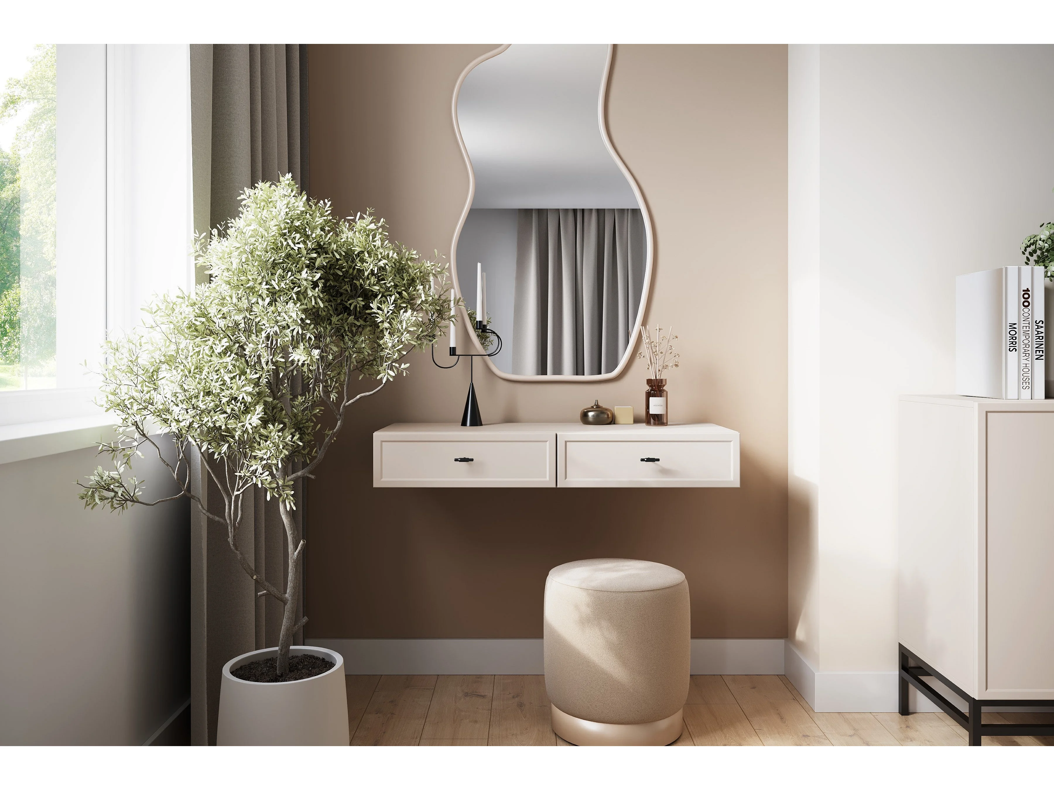 Hängekonsolentisch „Cashmere“ mit 2 Schubladen, 100 x 15 cm