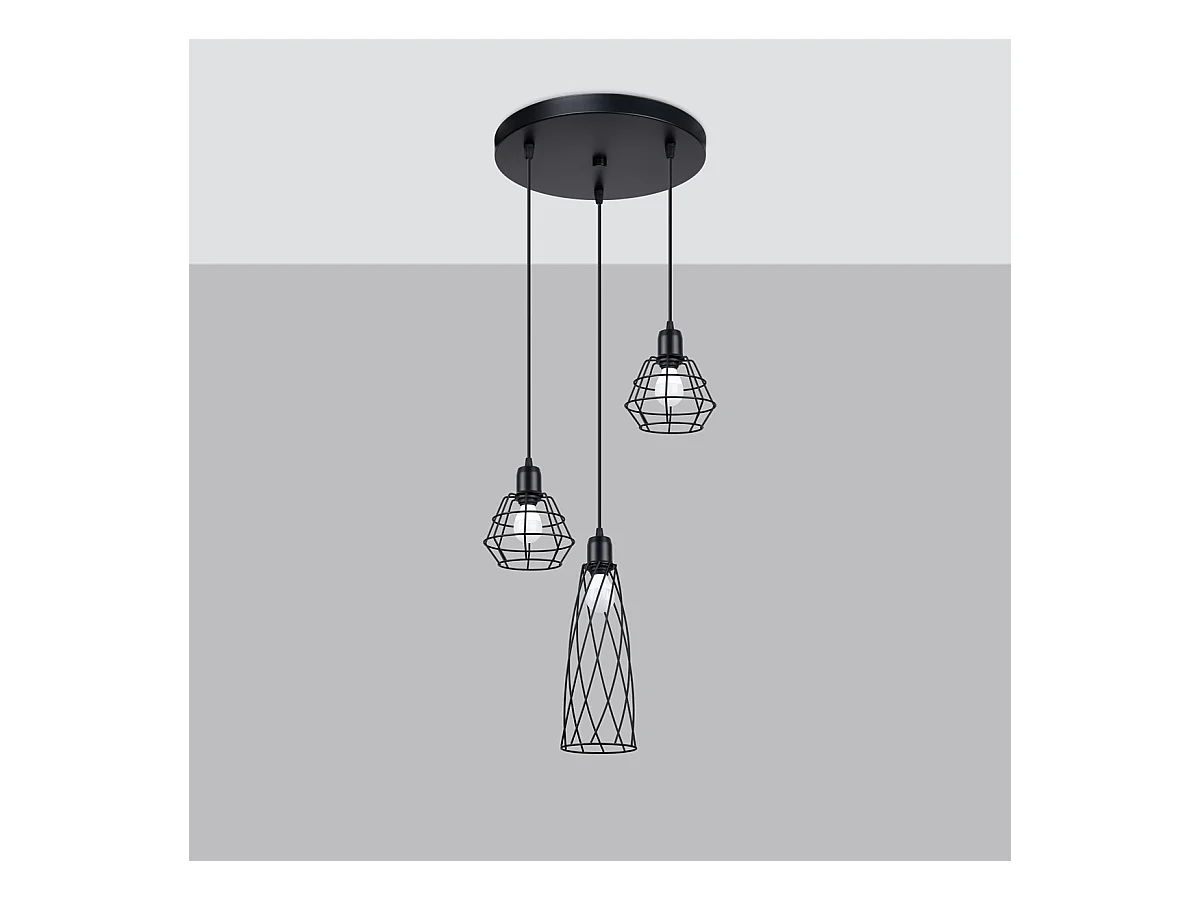 Pendelleuchten Suba Industriell Aus Stahl - 3 Lichtquellen - L.38 X H. Cm - Schwarz