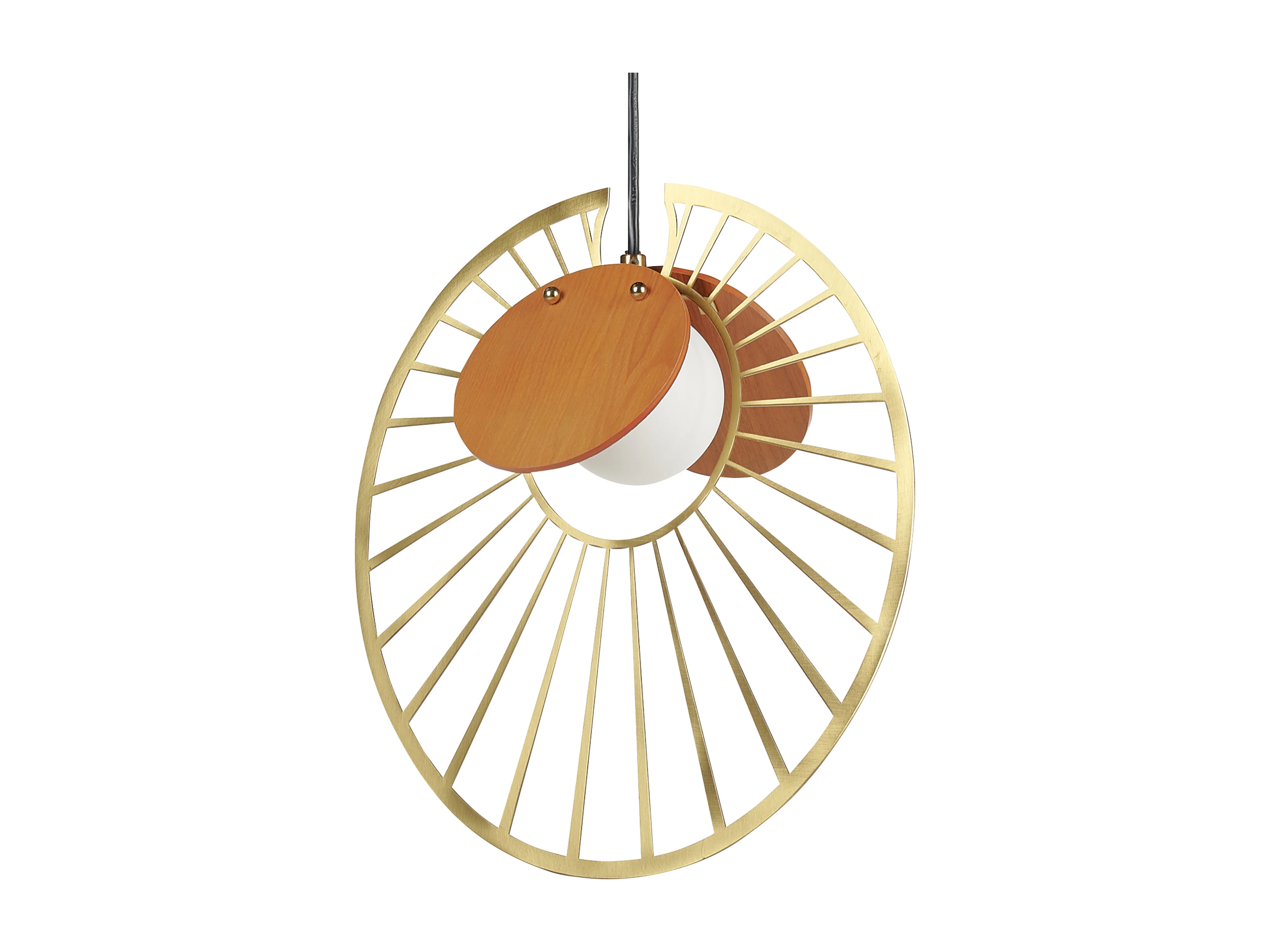 Hängelampe Metall gold / heller Holzfarbton rund modernes Design Bargo