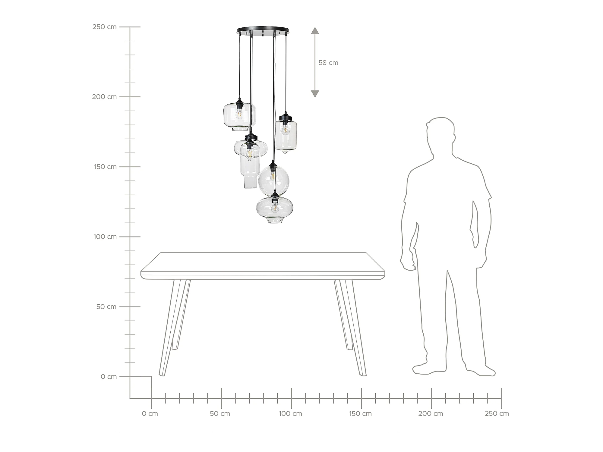 Hängelampe Moderne Lampe Runde Glasschirme 6 Leuchte Metall Transparent Bemboka