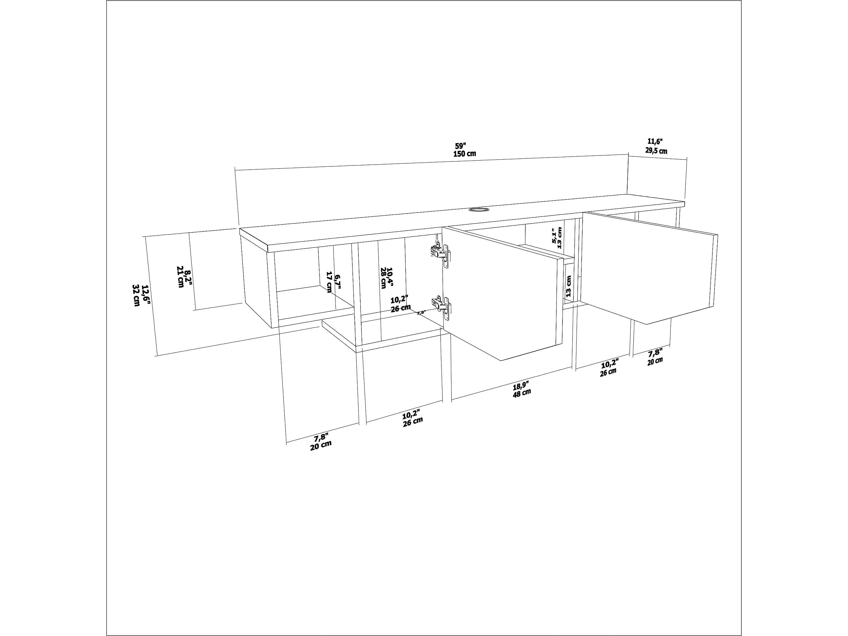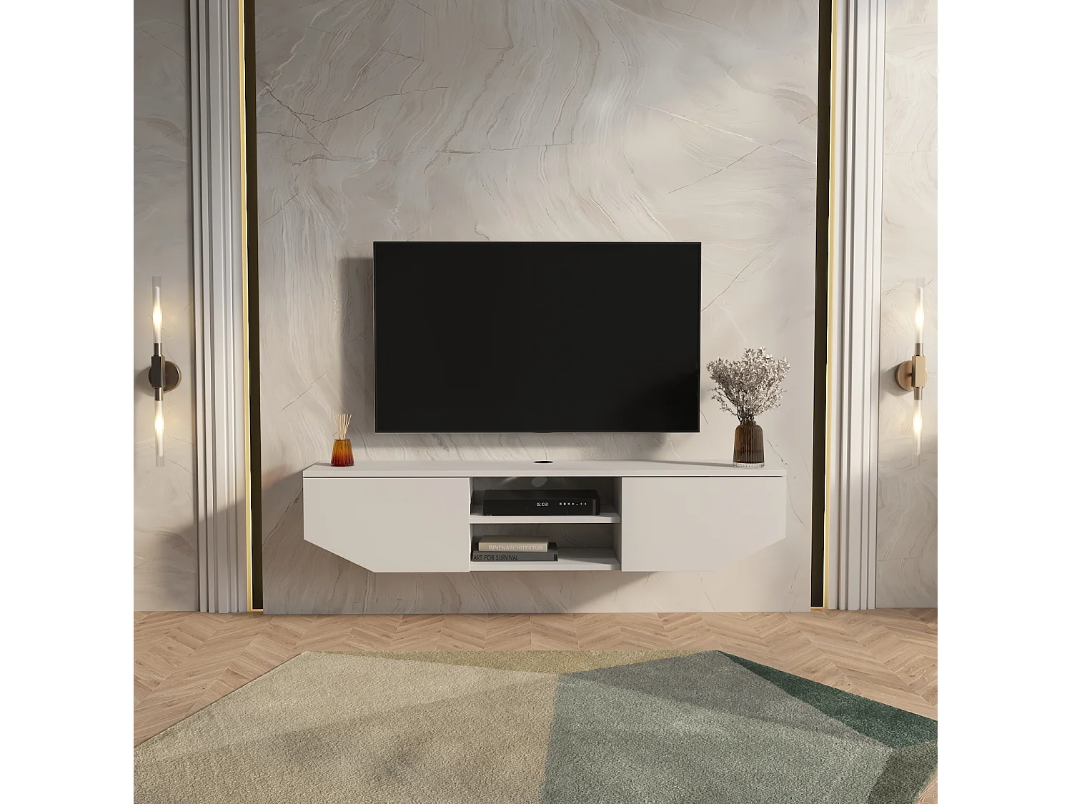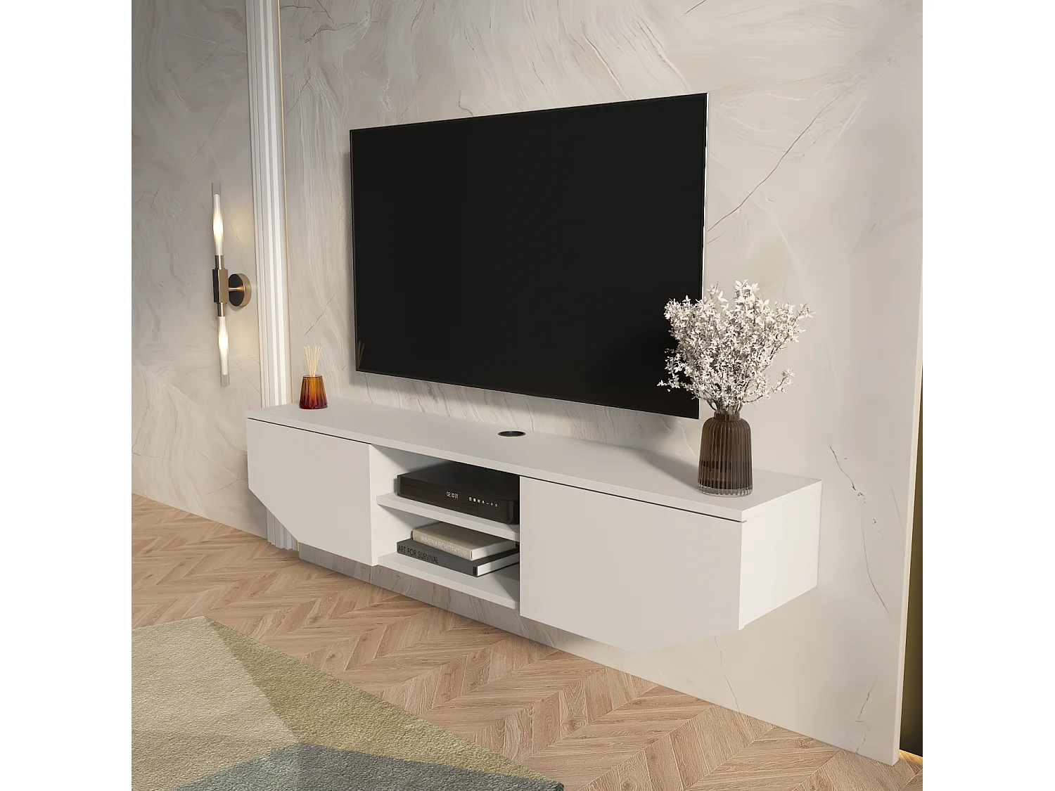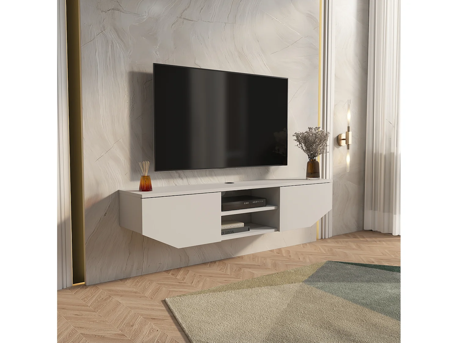 Hängende TV Einheit Hera Glänzend Weiß