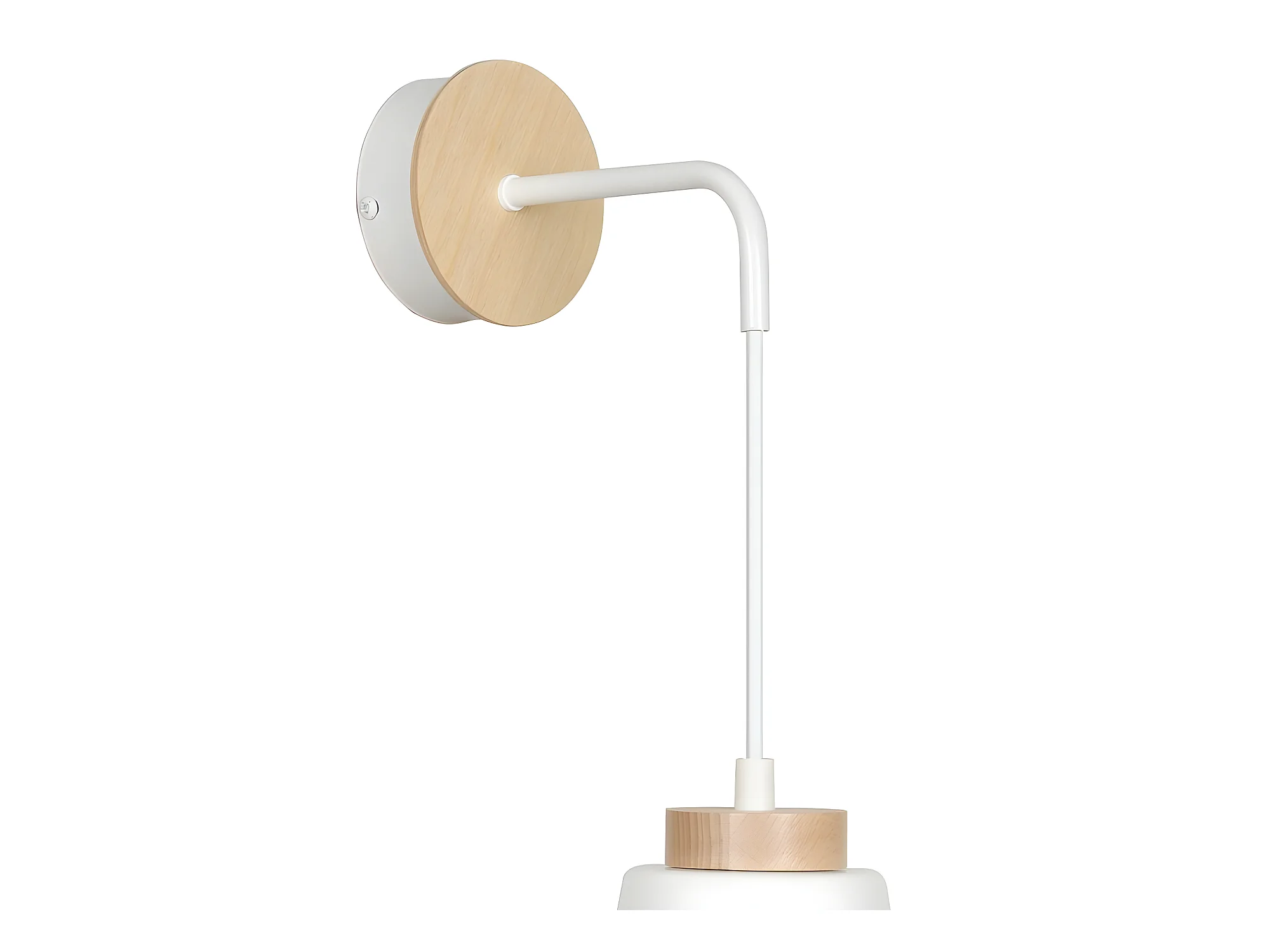 Hängende Wandleuchte Lasso mit weißem Lampenschirm und Holzdetail 1xE27
