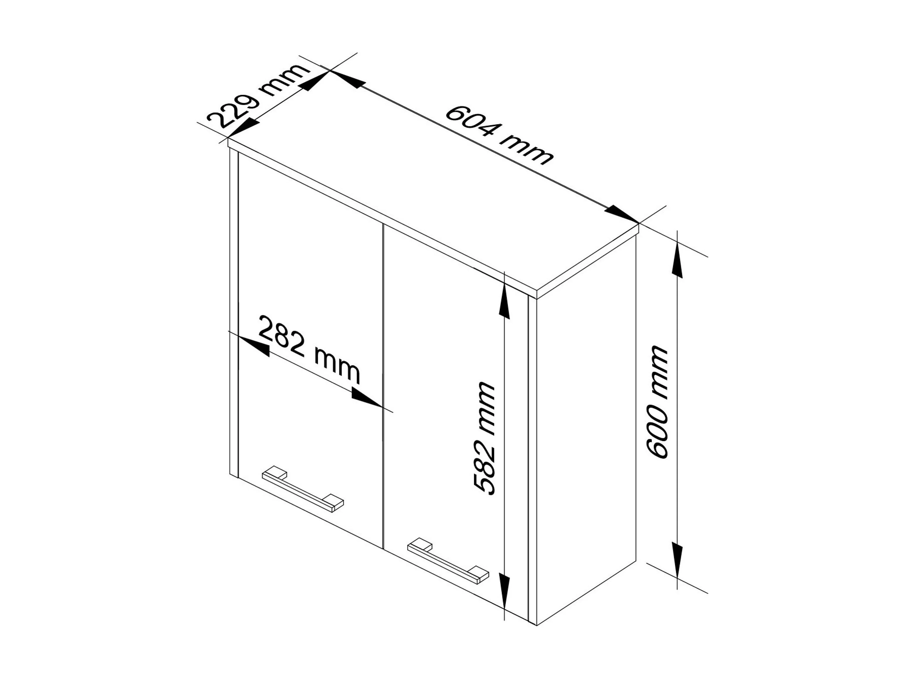 Hängender Badezimmerschrank AKORD FIN Sonoma-Eiche 60 cm 2 Türen 2 Ebenen Front Weiß B60 x H60 x T22,5 cm
