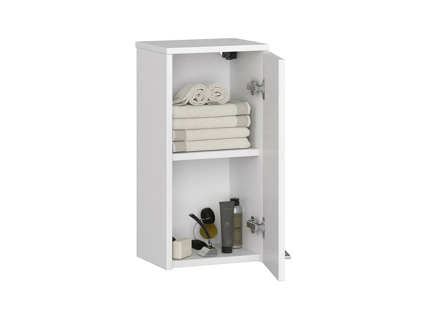 Hängender Badezimmerschrank AKORD FIN Weiß 30 cm Tür 2 Ebenen B30 x H60 x T22,5 cm