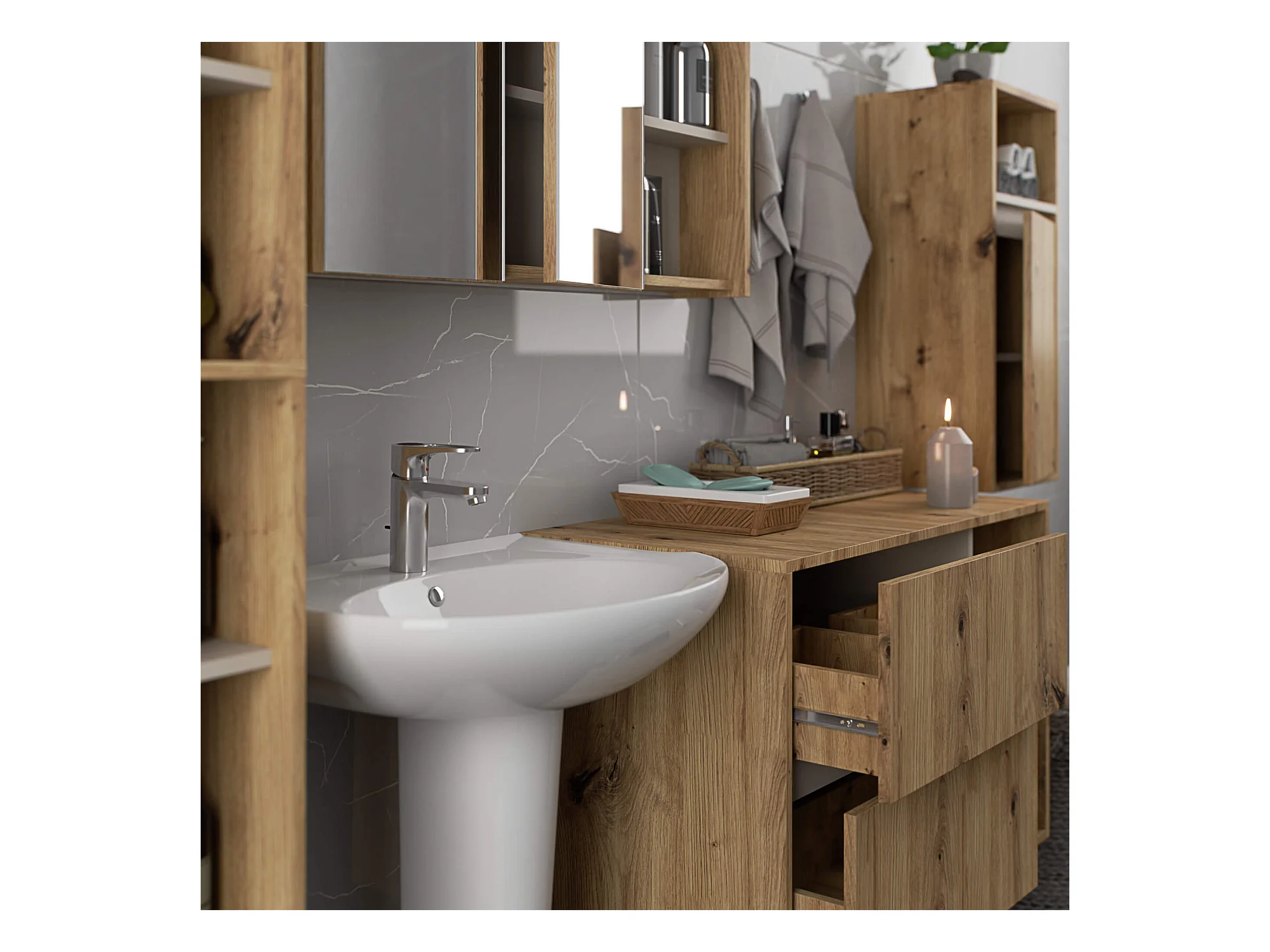 Hängendes Badezimmermöbel-Set VAMI in Artisan Eiche mit Innen in Kaschmir