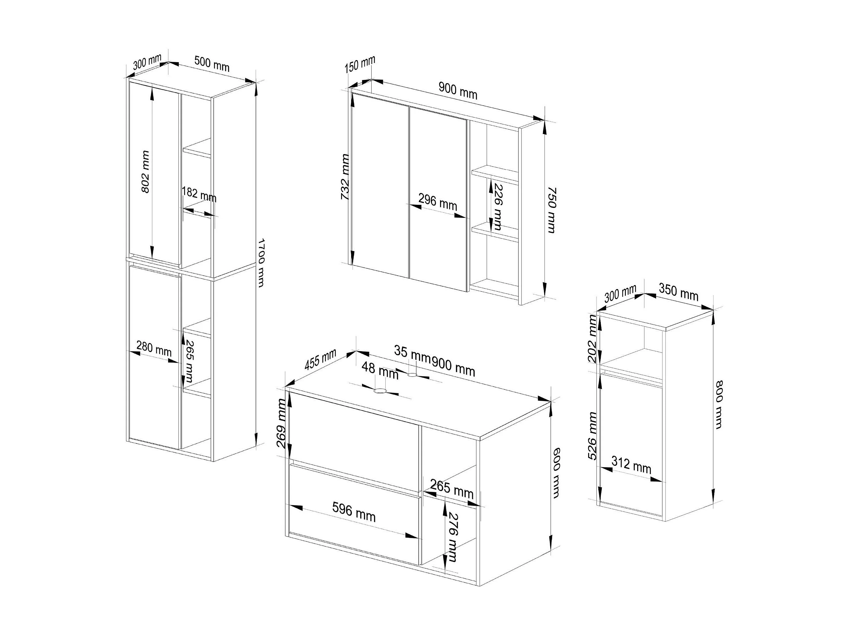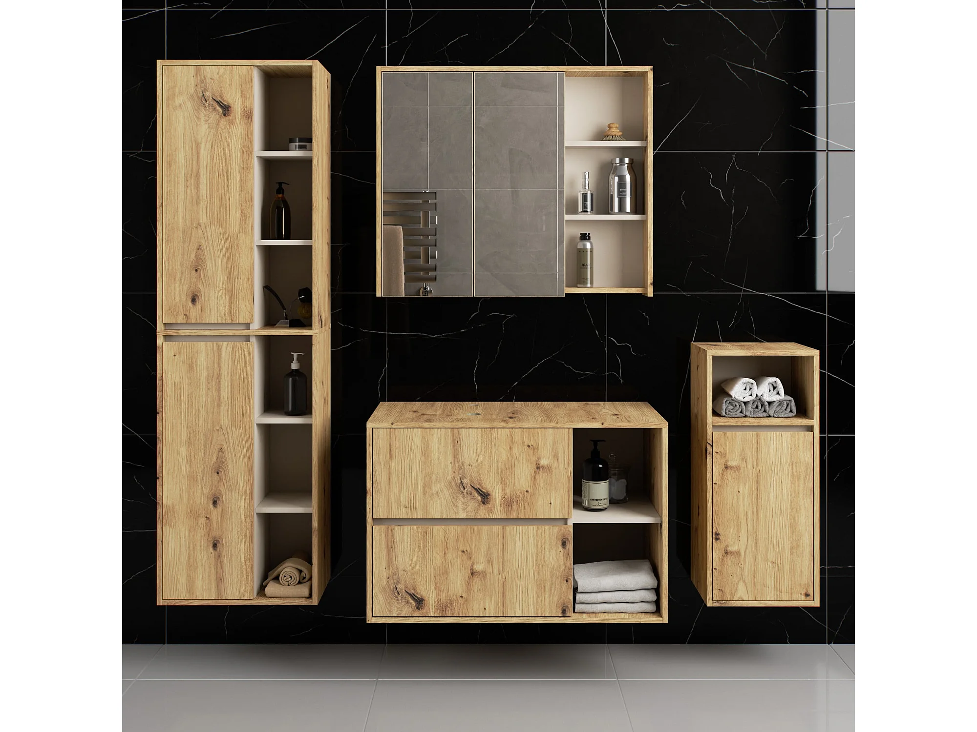 Hängendes Badezimmermöbel-Set VAMI in Artisan Eiche mit Innen in Kaschmir mit Ausschnitten für Aufsatzwaschbecken
