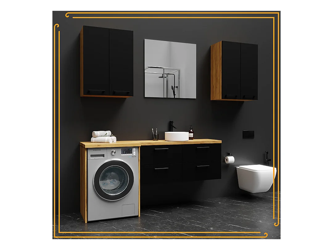 Hängendes Badezimmerschrank 60 cm über Waschbecken Waschmaschine Regale Eiche Craft Schwarz