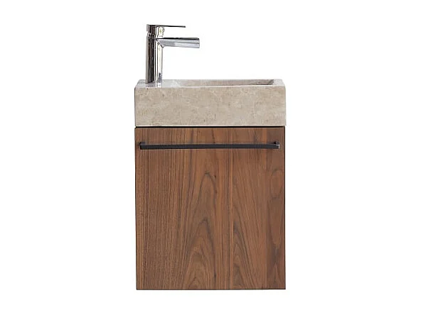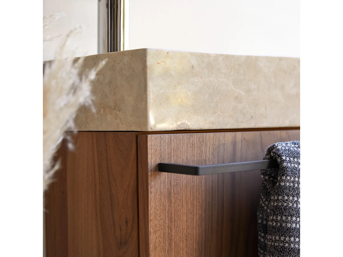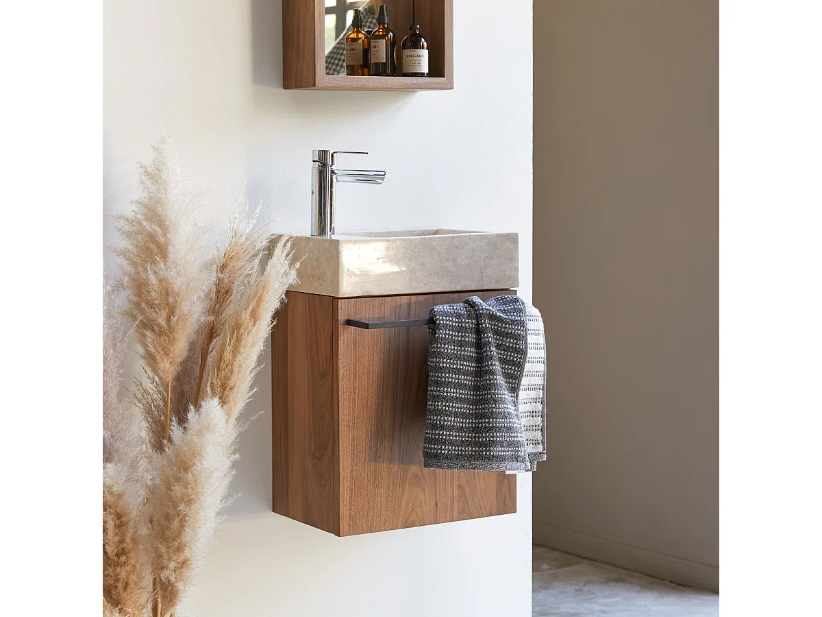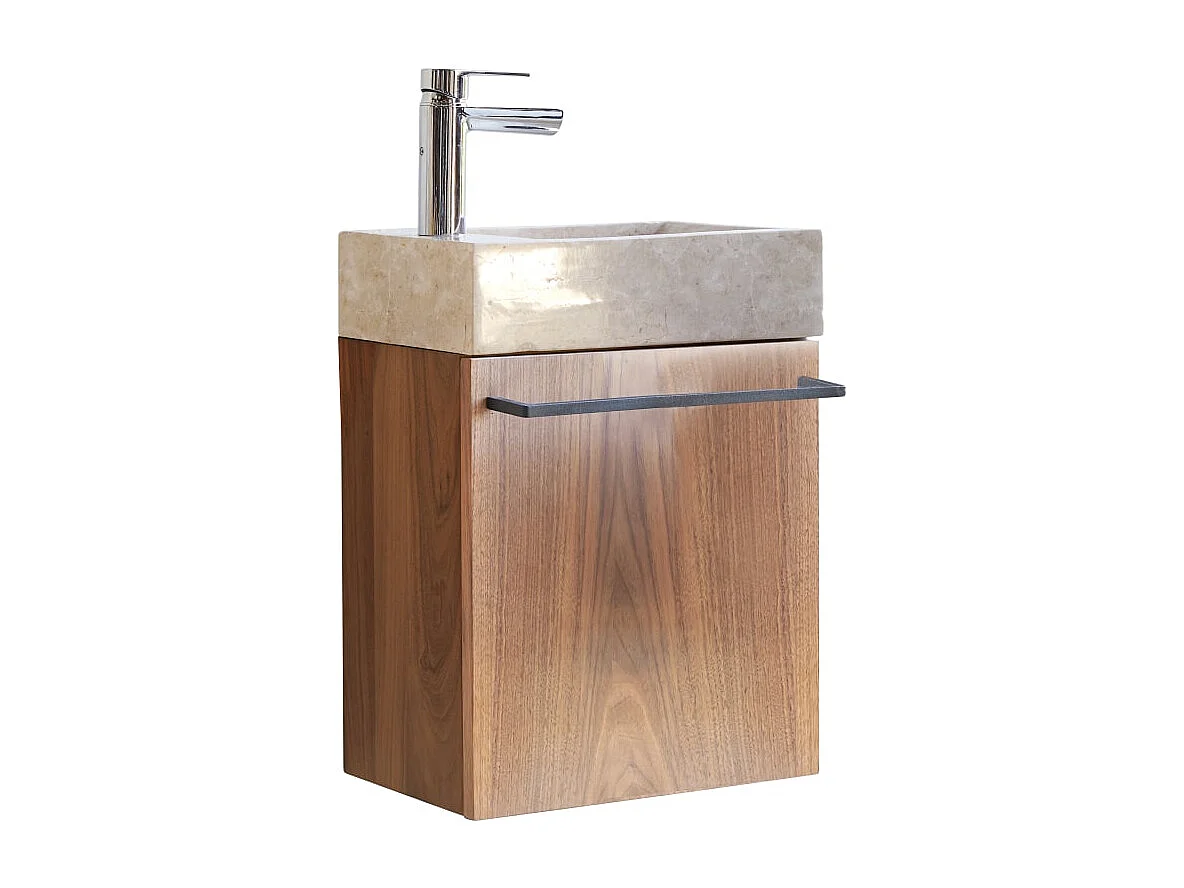Hängendes Handwaschbecken Stelle aus Nussbaum und cremefarbenem Marmor