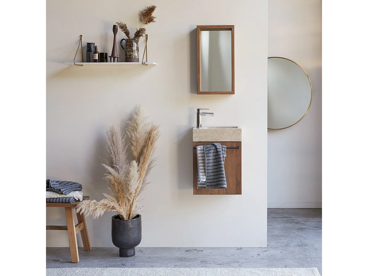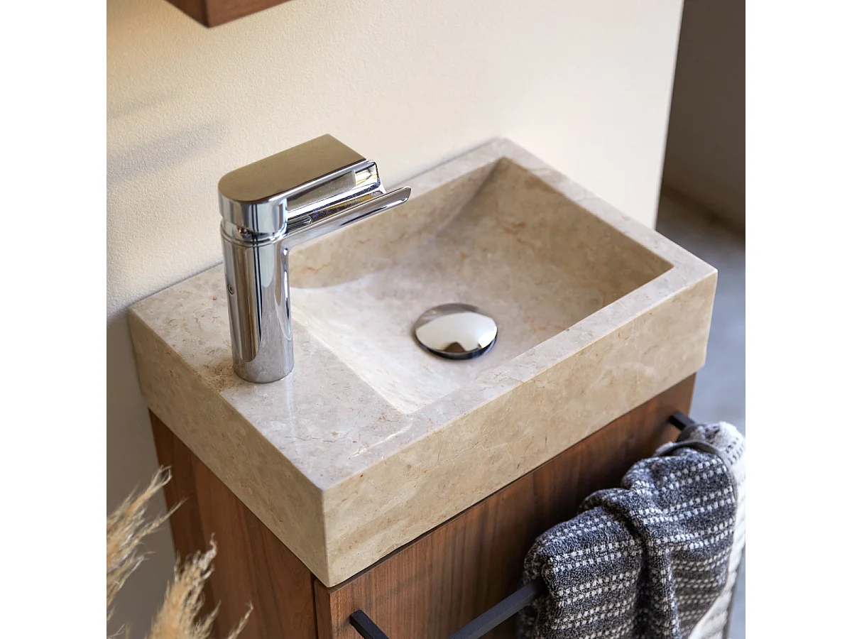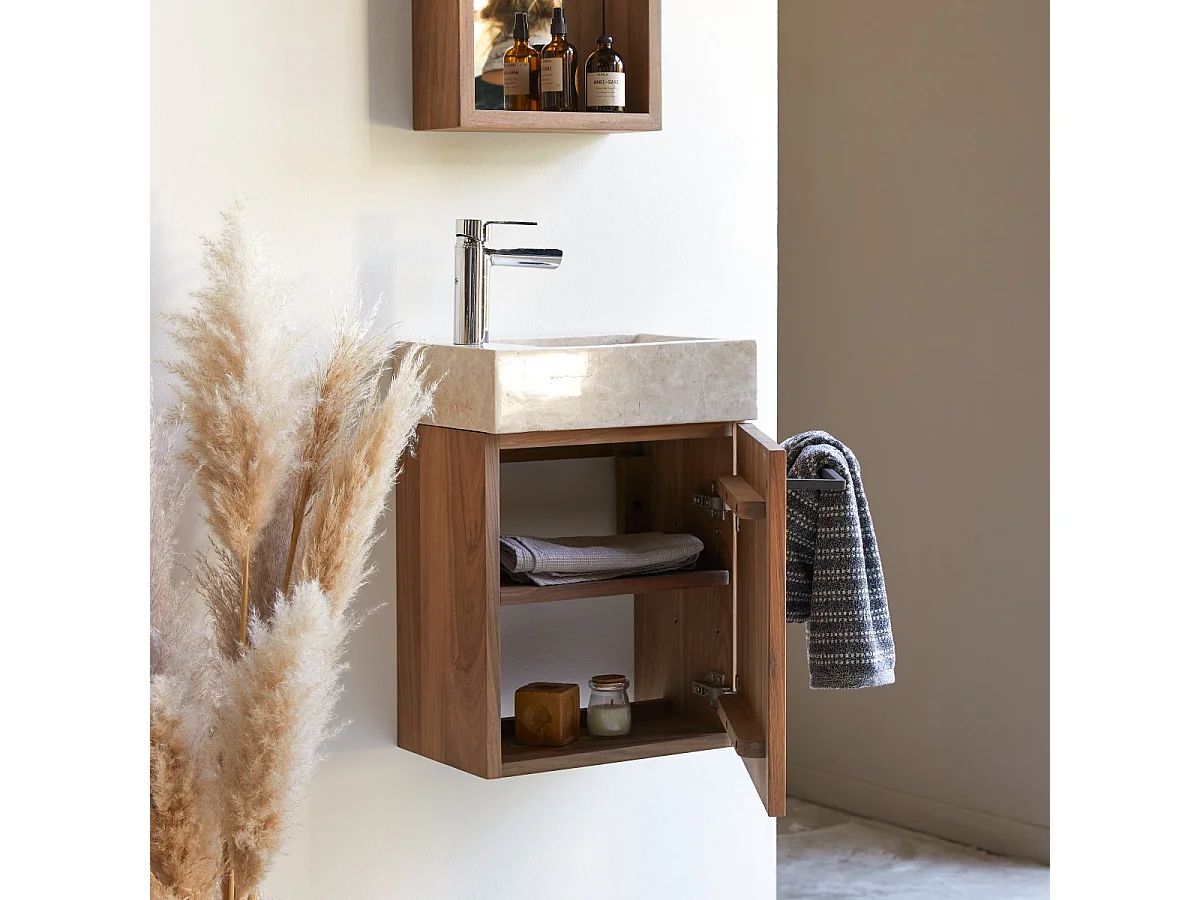 Hängendes Handwaschbecken Stelle aus Nussbaum und cremefarbenem Marmor