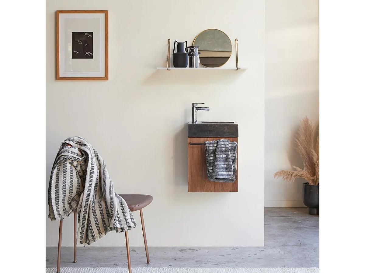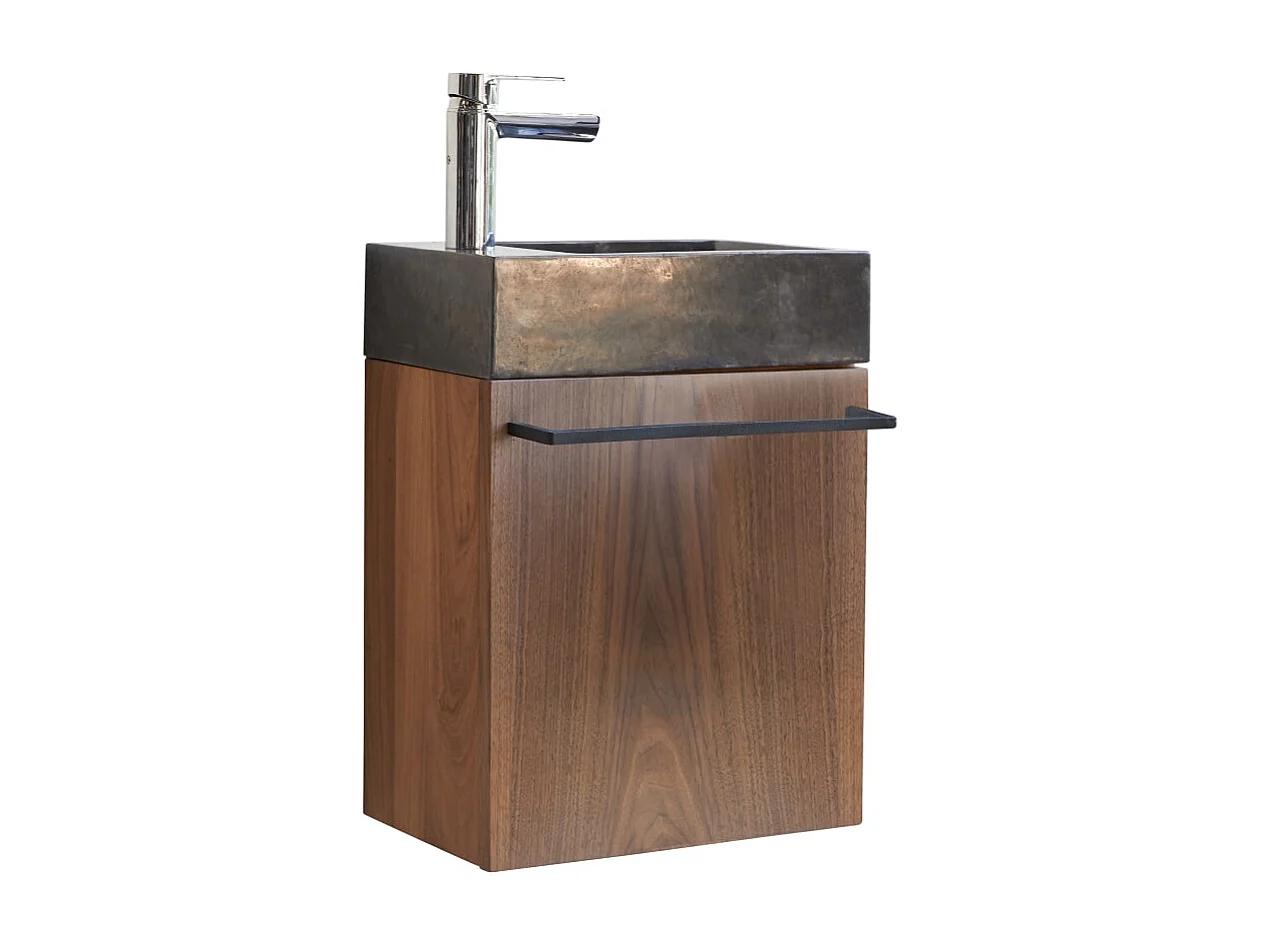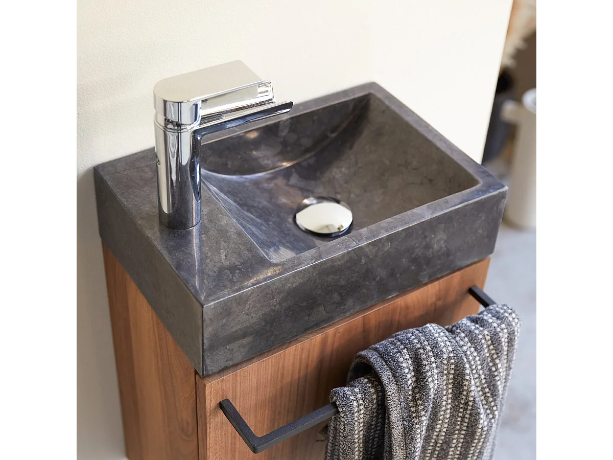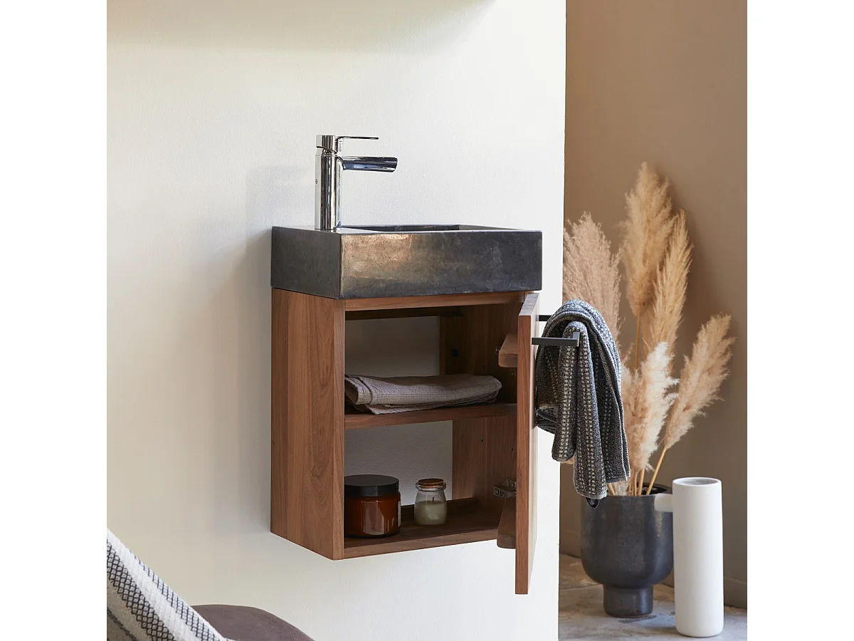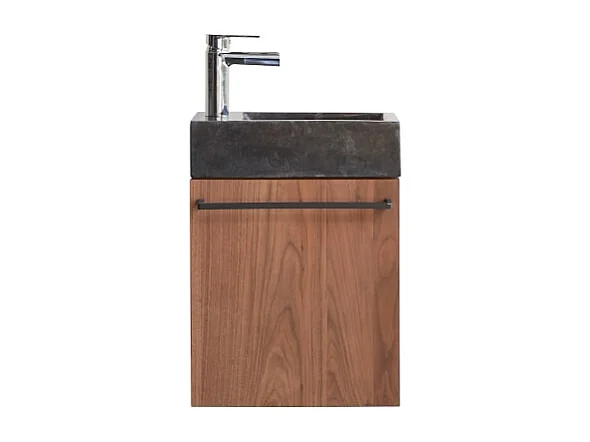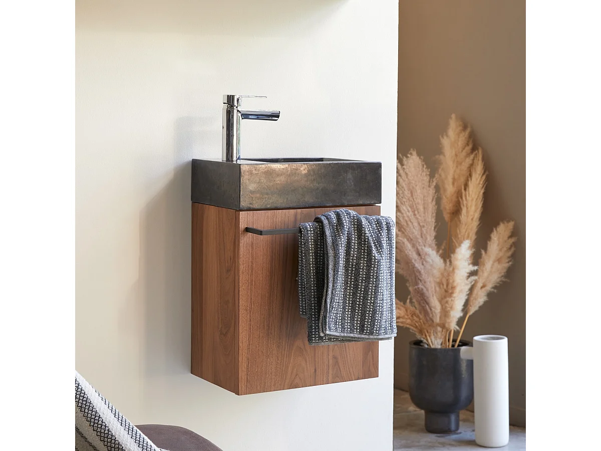 Hängendes Handwaschbecken Stelle aus Nussbaum und schwarzem Marmor