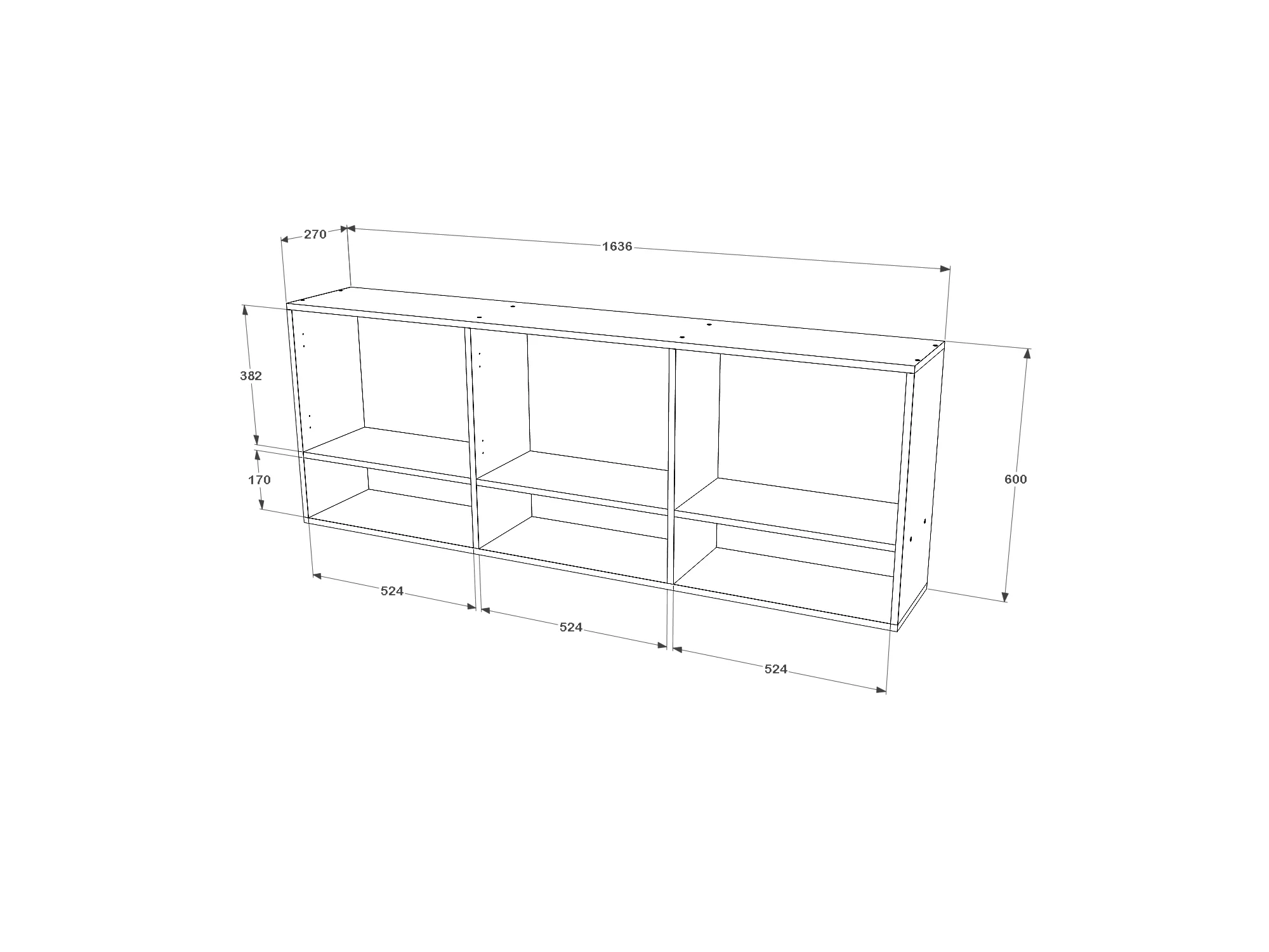 Hängeschrank Malmo, 3 Türen, Eiche Weiß/Anthrazit, 164 x 27 x 60 cm