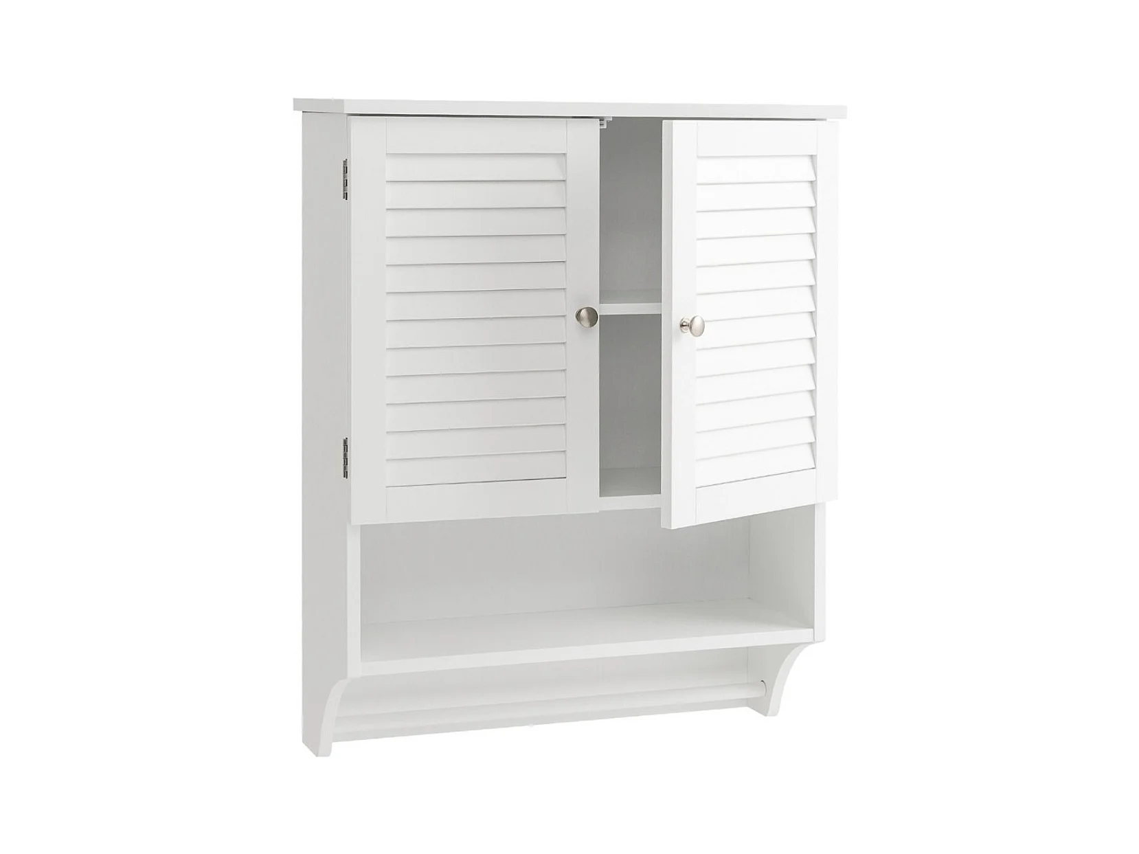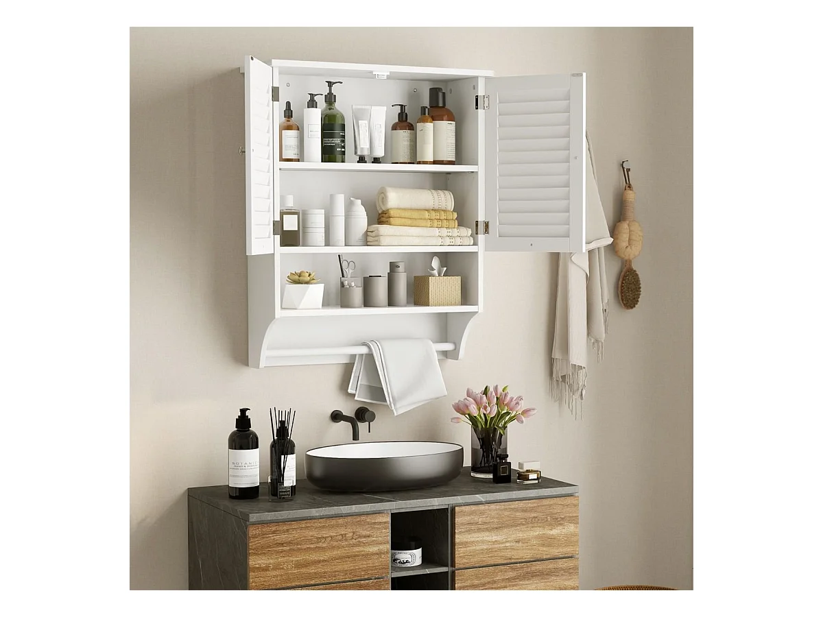 Wandschrank Hängender Medizinschrank mit 2 Lamellentüren 58 x 22 x 75 cm Weiß