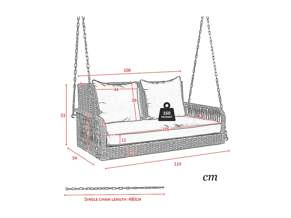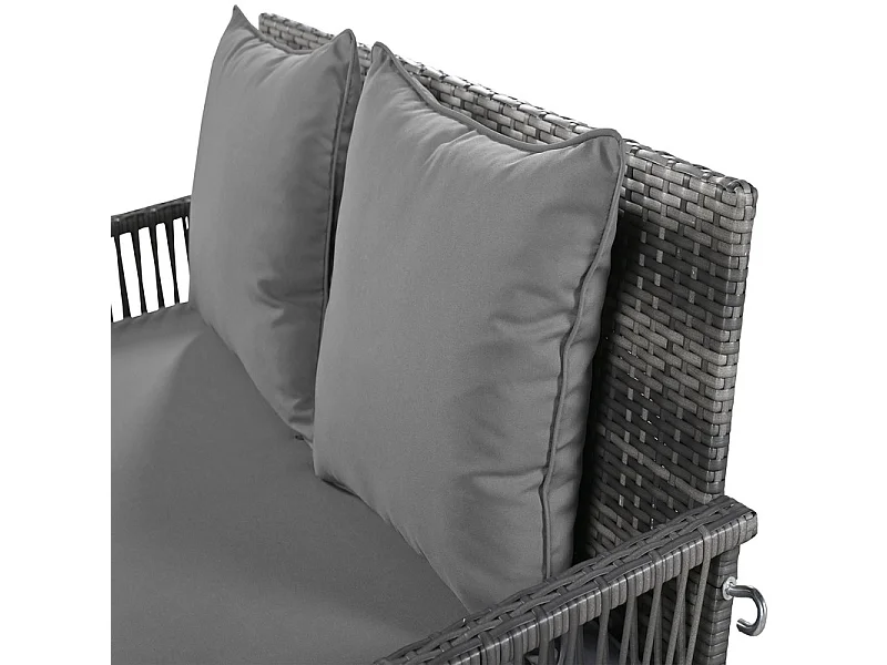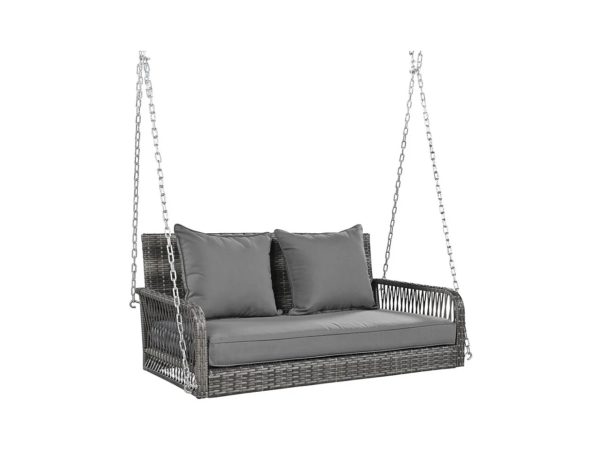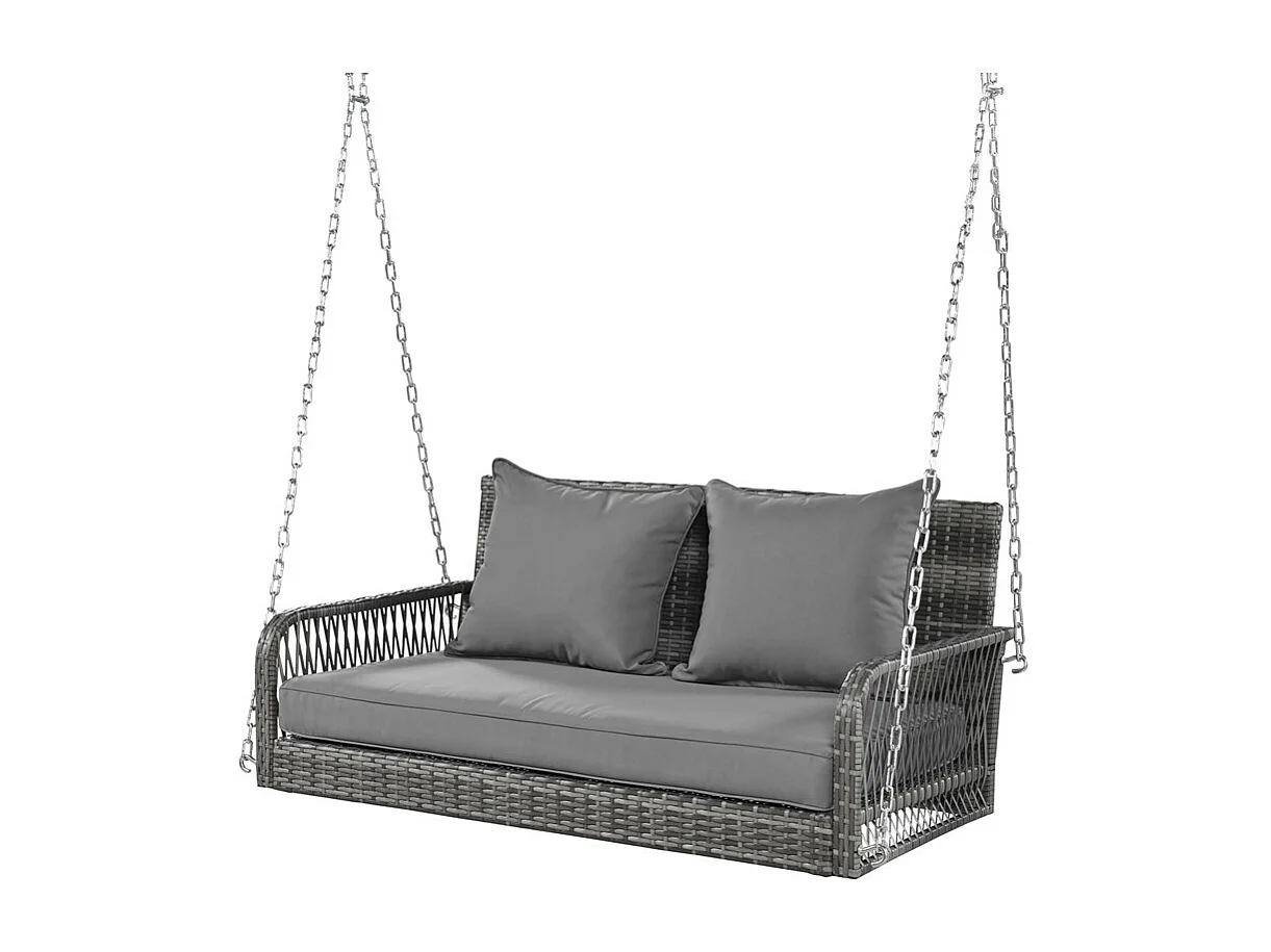 Hängesessel aus geflochtenem Harz – Gartenschaukel – 2 Plätze – mit Kissen – Grau