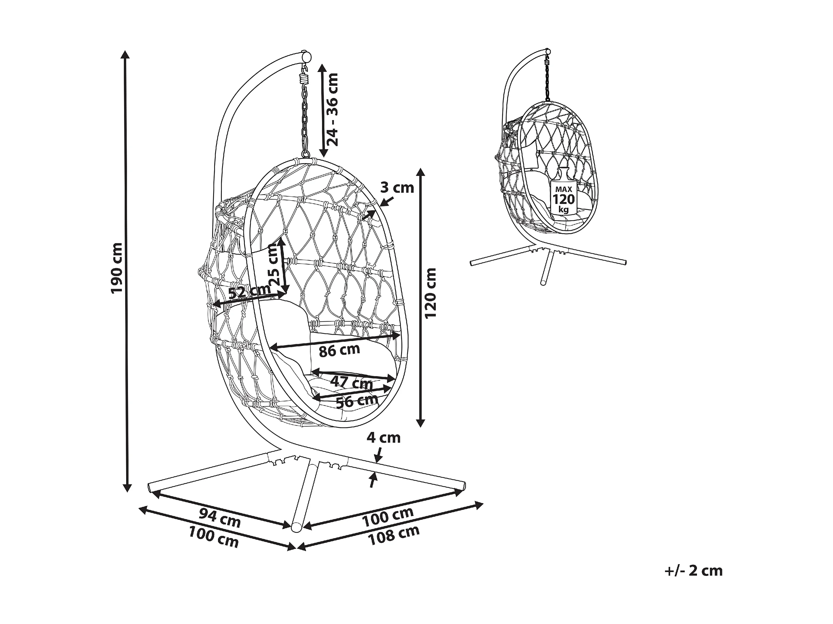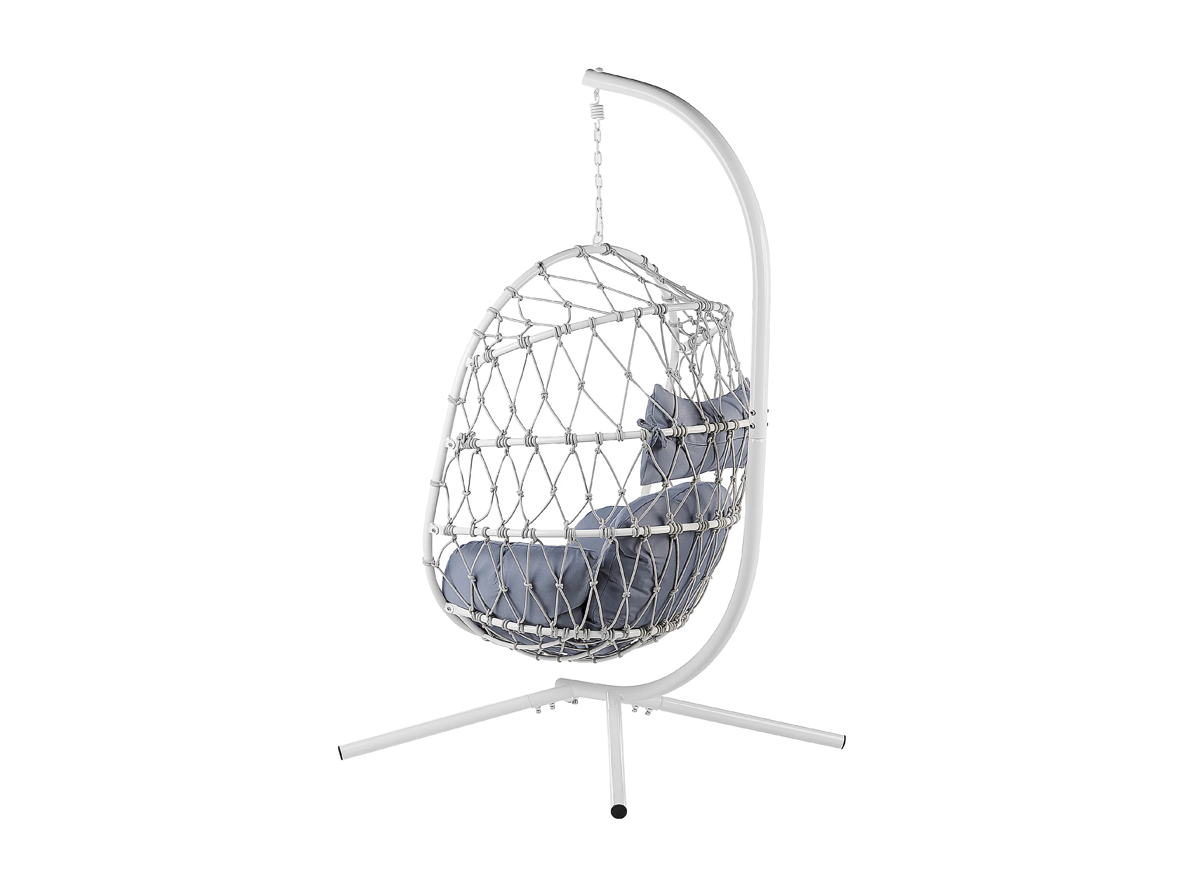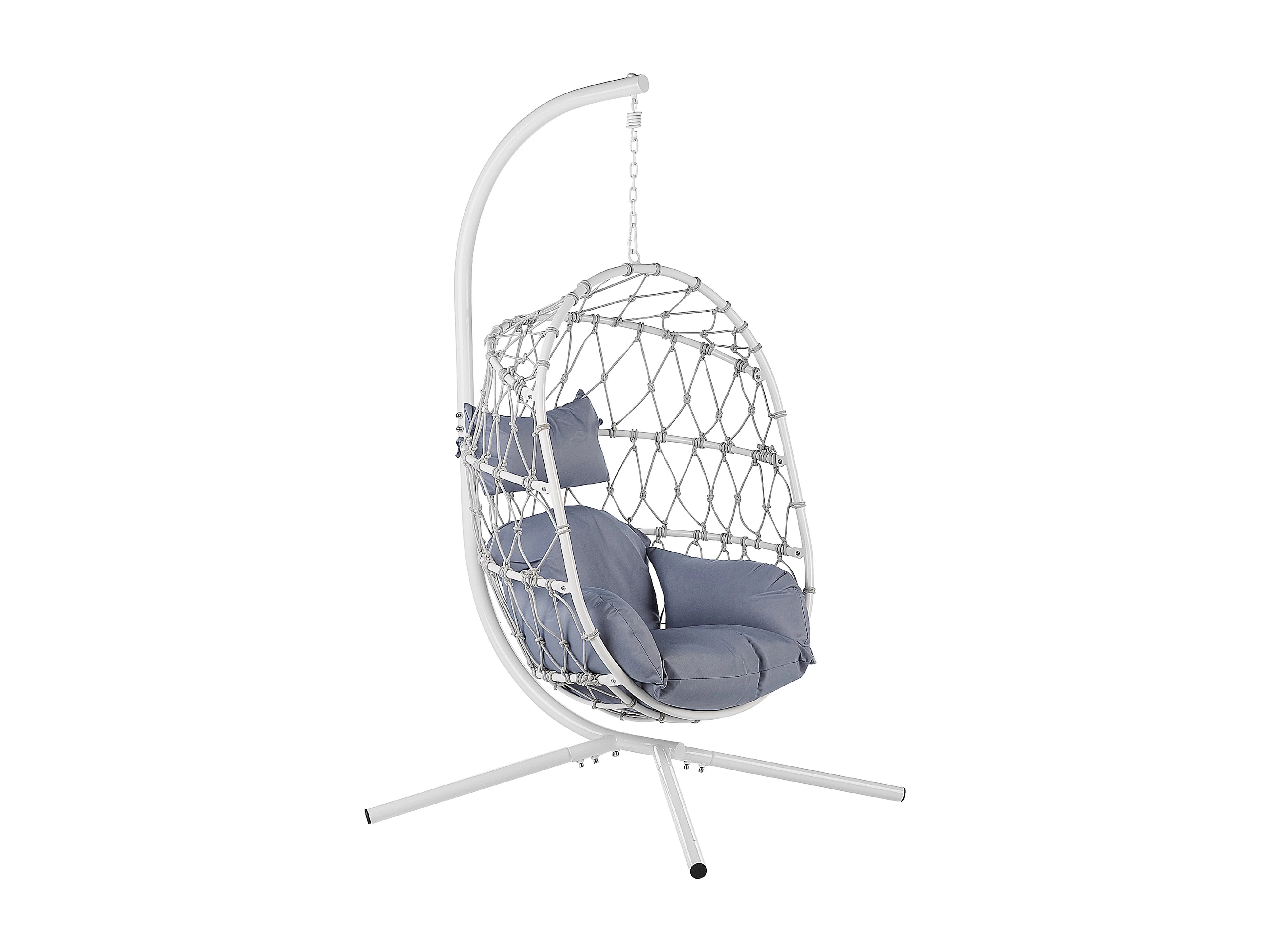 Moderner Hängekorbsessel Flechtseil mit weißem Gestell inkl. Kissen grau Adria